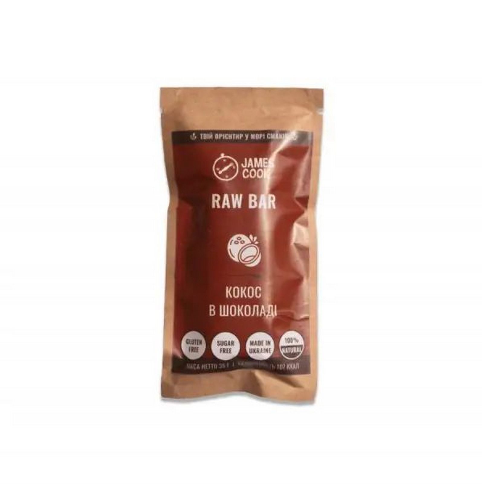 Состав: черний шоколад, кокосовая стружка, синий изюм, финики Пищевая ценность на 100 г: белки – 6.0 г, жиры – 13.3 г, углеводы – 46.7 г, пищевые волокна 3.3 г Энергетическая ценность на 100 г: 303 ккал (1267 кДж) Вес: 35 г Срок годности: 6 мес