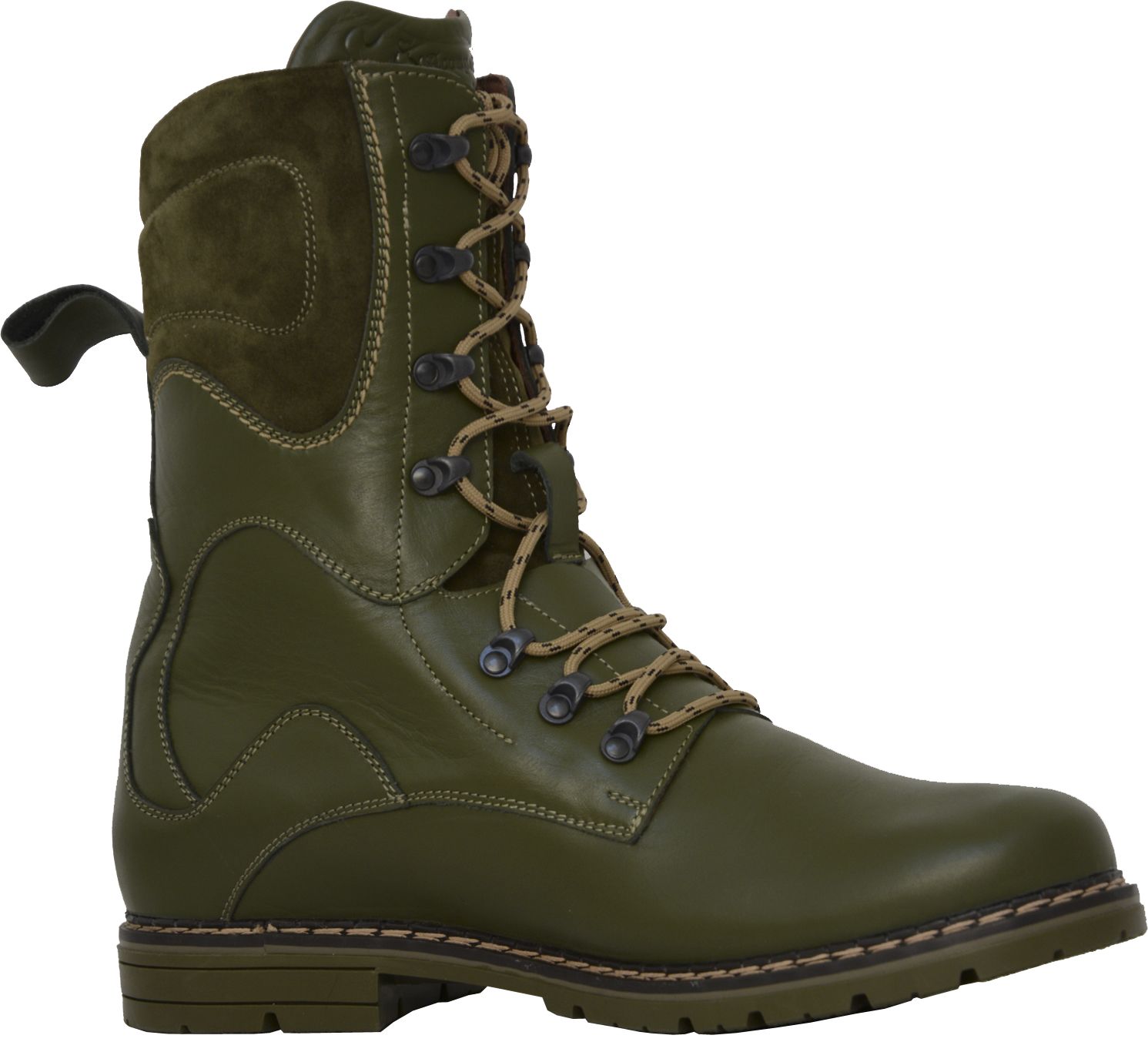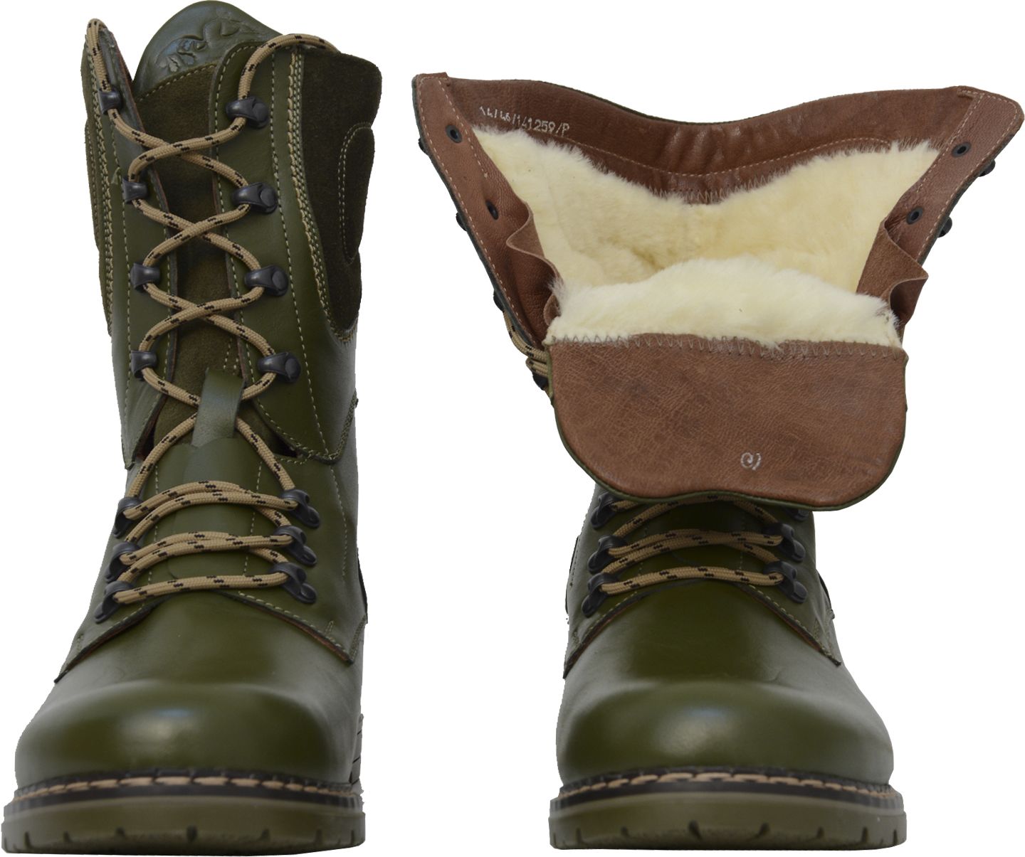 Кожаные зимние ботинки Acropolis МЧО-1 с подкладкой из овчины. Натуральная овчина отлично сохраняет тепло и обеспечивает максимальный комфорт охотнику на зимней охоте. Специальная конструкция предохраняет от попадания снега и дождя внутрь обуви. Протектор подошвы обеспечивает хорошее сцепление с грунтом . В комплект входит сумка для хранения для защиты от насекомых вредителей . Натуральная кожа специальной выделки с водозащитным эффектом и натуральный мех из овцы. Подкладка из наутральной кожи.