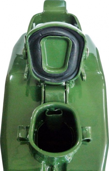 Металлическая канистра для бензина обьемом 5 литров, изготовлена из штампованной стали. Высокачественная порошковая краска защищает поверхность канистры от ржавчины и от разложения содержимого топлива во время длительного хранения.