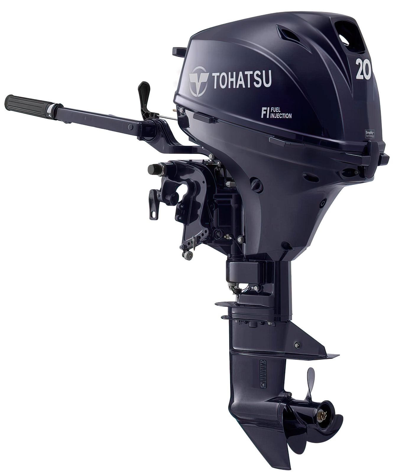 Четырехтактный лодочный подвесной мотор Tohatsu MFS20ES с инжекторным EFI 2-х цилиндровым рядным, по 2 клапана на цилиндр, с одним SOHC распредвалом верхнего расположения двигателем обьемом 333 см3, мощностью 20 лошадиных сил, сухой вес всего в 43 кг, что является наименьшим среди конкурентов, CDI электронное опережение зажигания, термостат, диодная система предупреждения защиты двигателя, выхлопы газов через ступицу винта. Ручной запуск и ручное управление, уникальная запатентованная рукоятка дросельной заслонки совмещенная с управлением переключения передач, с возможностью регулировать обороты двигателя, переключать передачу и глушить мотор неотрываясь одной рукой. Мотор подходит для лодок с транцевой плитой высотой 381 мм. И, конечно, японская сборка.