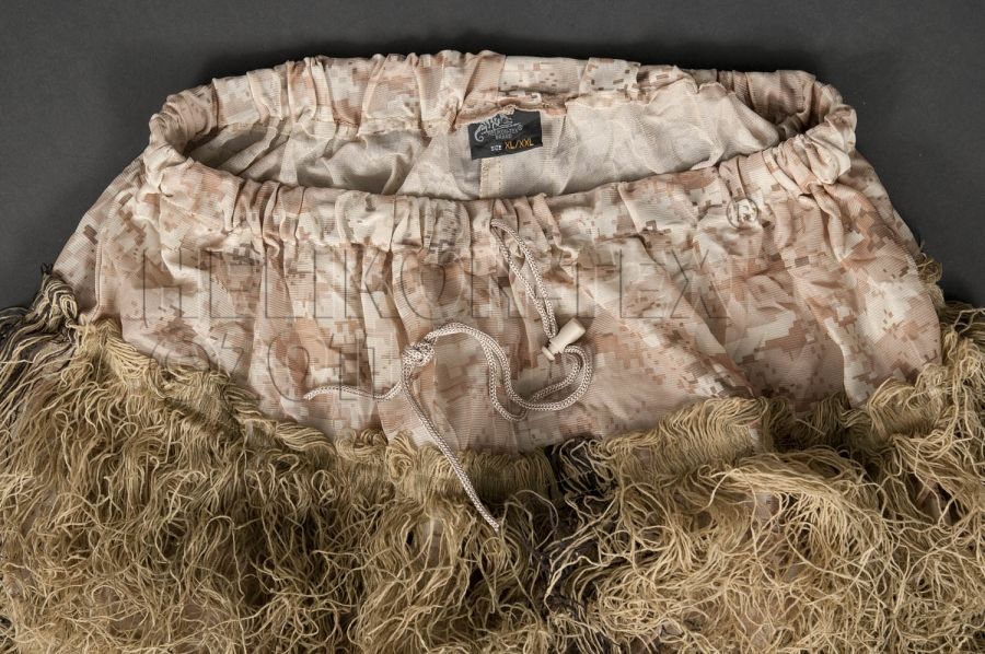 Маскировочный костюм гилли Helikon-Tex® Ghillie Suit - USMC Digital Desert расцветка подкладки Морская пехота США цифра пустыня. Представляет собой очень легкий и отлично дышащий маскировочный кoмплект, который можно одевать поверх основной формы, одежды. Костюм "кикимора" состоит из 4-х частей: куртка, брюки, головной убор и маскировочная лента для оружия. Каждый элемент набора сделан из 100% полиэстеровой мелкосетчатой ткани с нашитыми максировочными джутовыми волокнами. В зависимости от окружающей среди можно нашивать дополнительные волокна. Необходим для охотников, снайперов, разведчиков, и просто игроков в страйкбол. Размер XL-XXL.