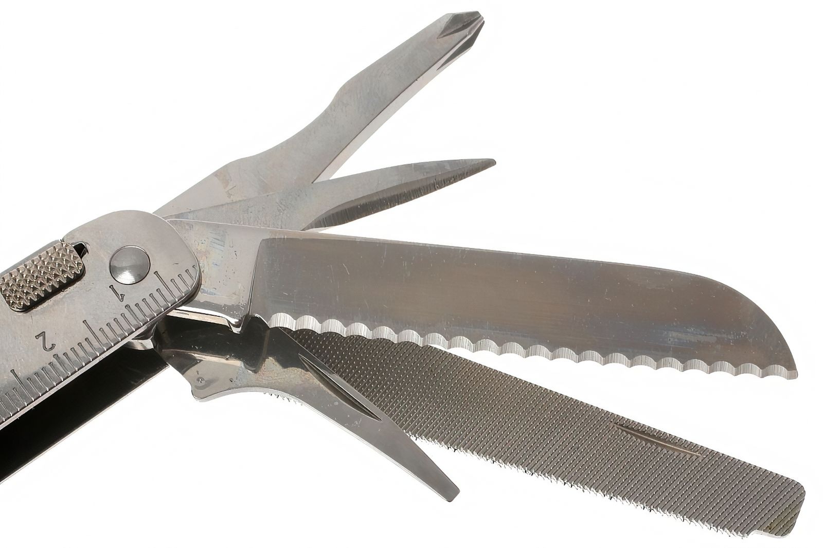 Также здесь можно увидеть ножовку по дереву и по металлу. Пила легко справится с крупными поленьями или массивными ветками, а ножовка поможет распилить твердые металлические конструкции, достаточно крупных размеров. В комплектацию мультитула включен целый набор отверток, приспособлений для работы с проводами и прочих функциональных инструментов, которые всегда найдут себе применение в умелых руках.