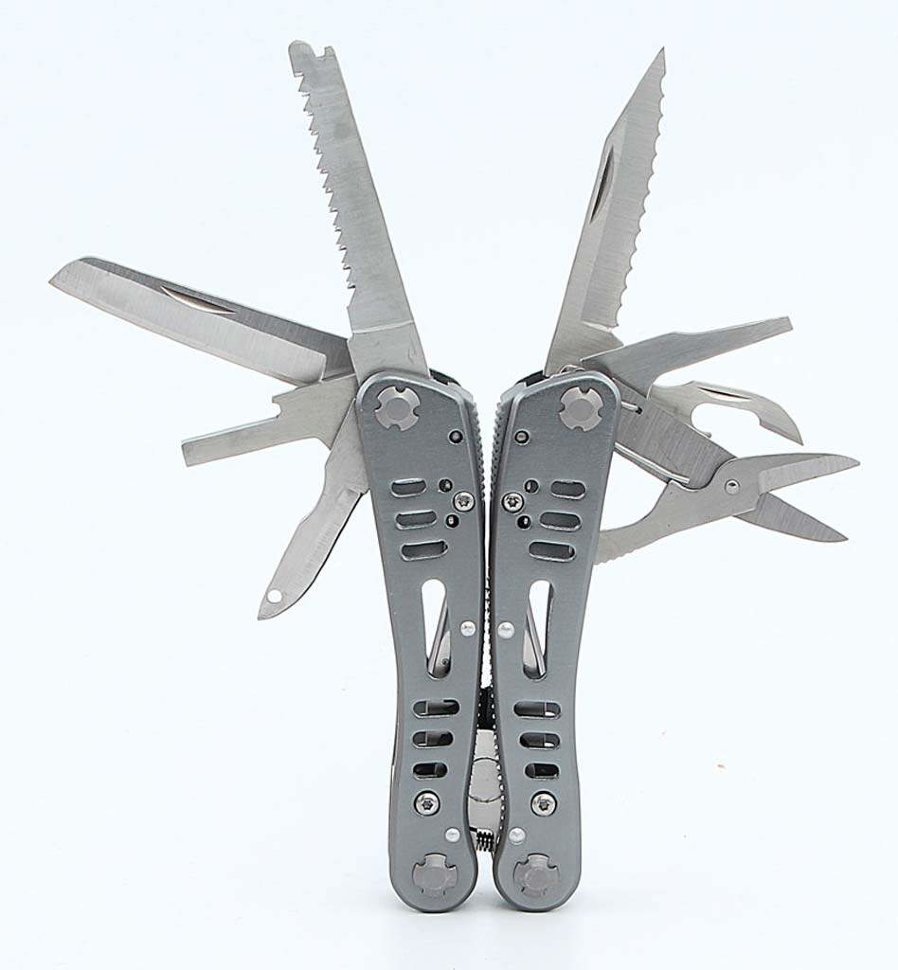 Модель Ganzo G203 представляет из себя полноценные плоскогубцы с мощными кусачками и возможностью плотного захвата круглых предметов, а также целым комплектом дополнительных инструментов внутри рукояток. В качестве материала для мультитула этой модели используется сталь 440С. Она относится к разряду нержавеющих сплавов с хорошими показателями твердости. Все элементы мультитула покрыты дополнительным слоем черной порошковой краски, которая также оберегает металл от коррозии. Это современное и очень стойкое покрытие, которое не стирается в процессе использования инструментов. А матовый черный мультитул выглядит действительно стильно и очень презентабельно. Из дополнительных инструментов, в модели Ganzo G203 присутствуют пила, серрейторный и обыкновенный нож, миниатюрные ножницы, открывалка, шило, маленькие ножнички, держатель для сменных бит. Все сменные насадки для отвертки хранятся в одном общем органайзере и закрепляются на держателе при помощи магнитного переходника. Мультитул вместе с битами хранится в плотном чехле из нейлона, который закрывается на кнопку, легко стирается в случае необходимости и быстро высыхает, если намокнет.