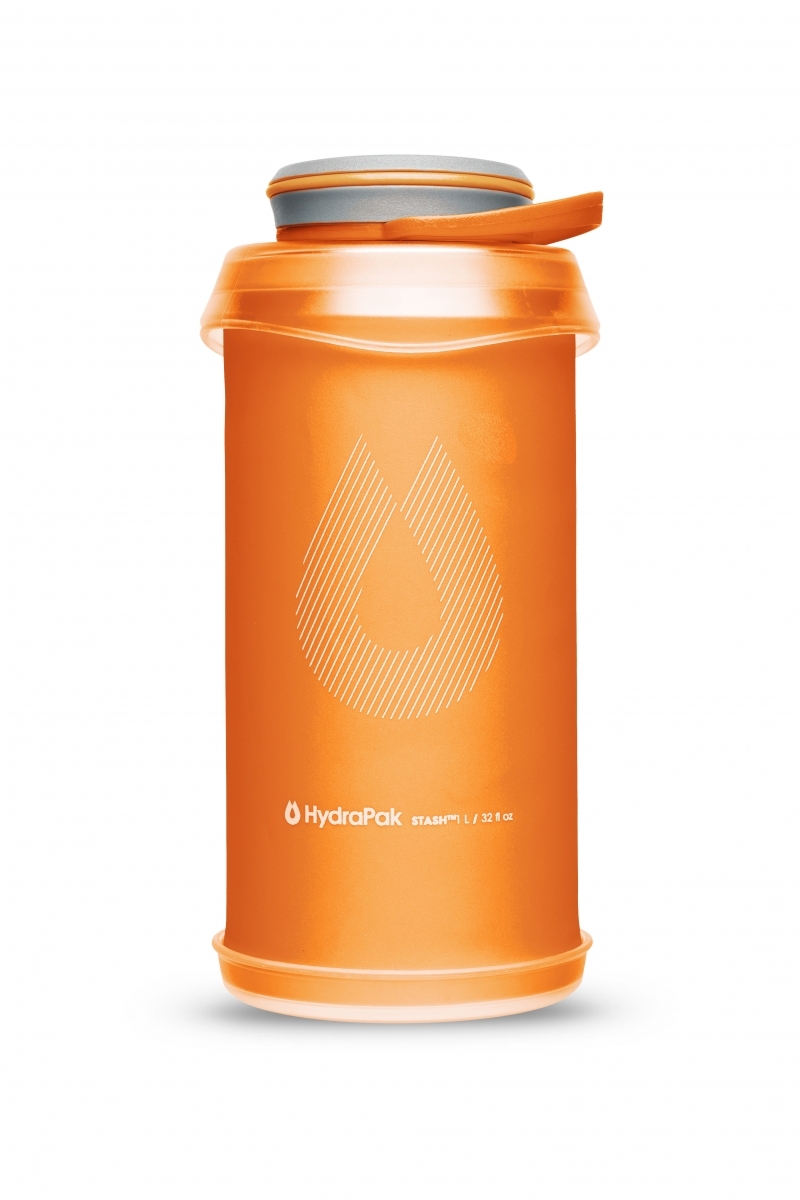 HydraPak Stash 1L — практичная компактная мягкая бутылка с ярким дизайном. Вдвое легче жестких аналогов. Помогает экономить место в рюкзаке: в сложенном виде занимает лишь четверть от полного объема.