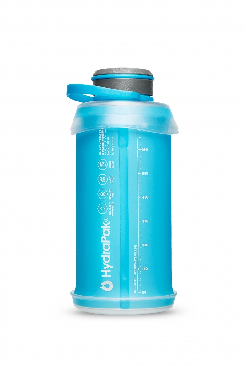 HydraPak Stash 750 ML — компактная мягкая бутылка для воды, которая вдвое легче жестких аналогов. Экономит место в рюкзаке: пустая бутылка в сложенном виде занимает лишь четверть от полного объема.