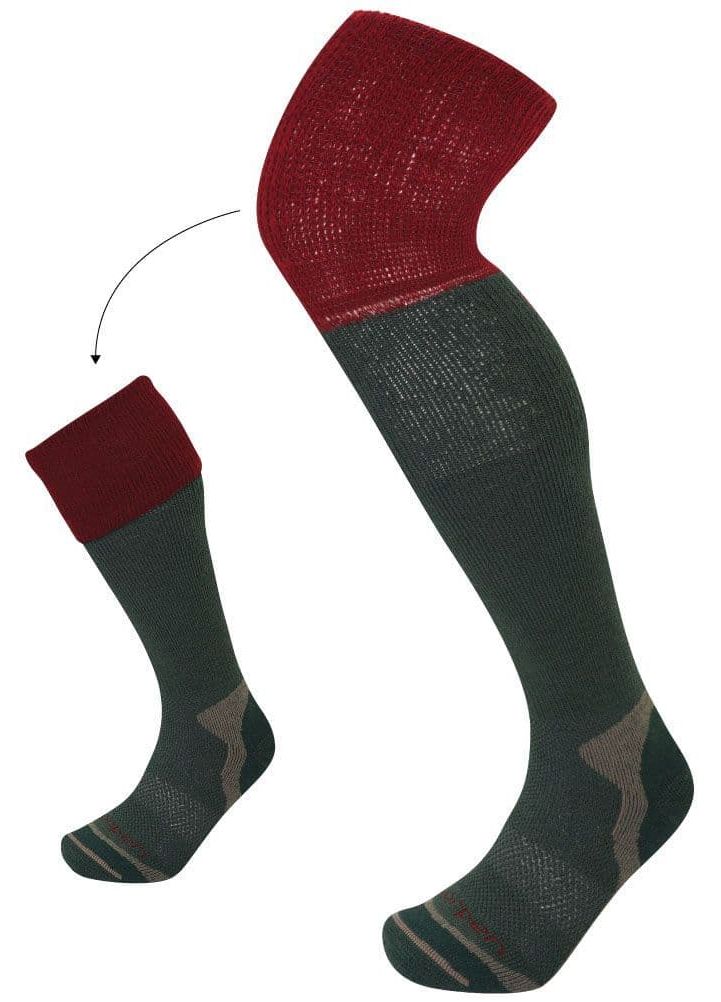 В полностью развернутом состоянии для ношения в сапогах, забродах, вейдерсах или в свернутом состоянии, как стандартные высокие носки, гольфы.