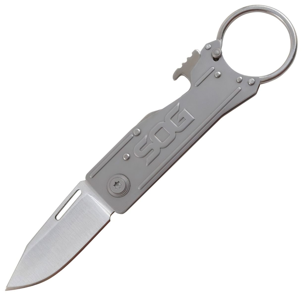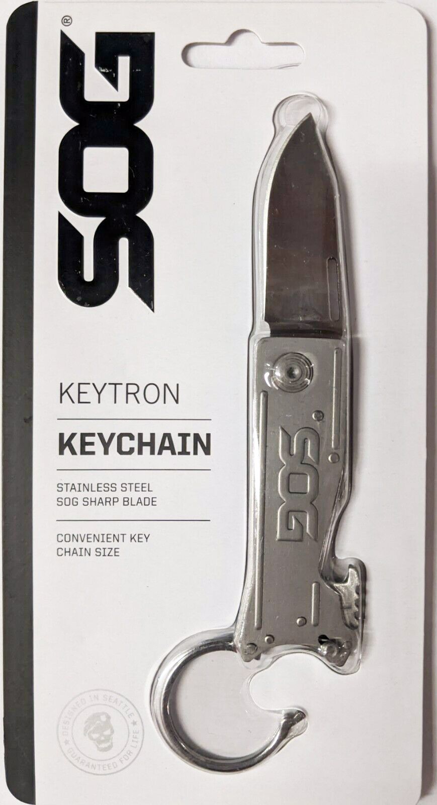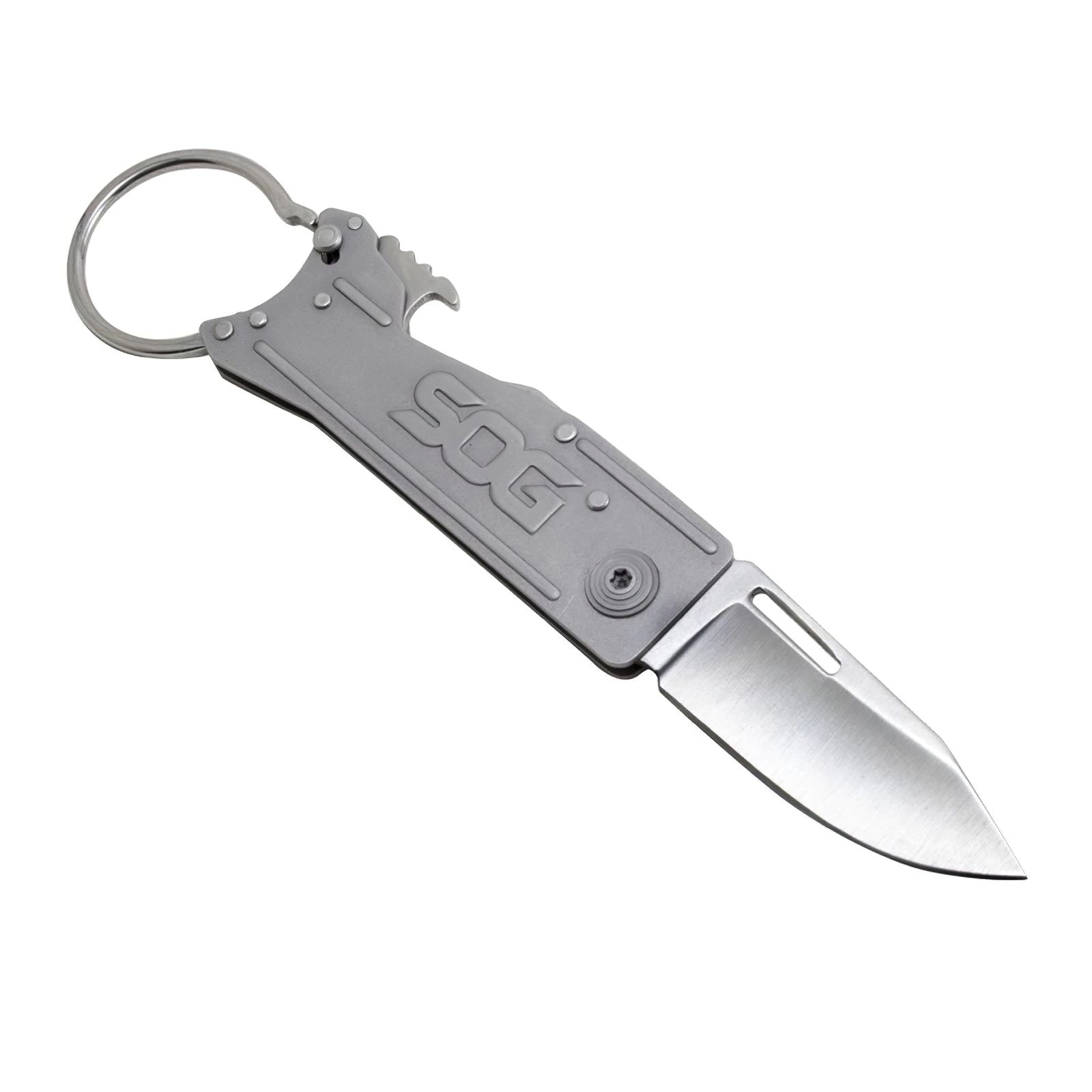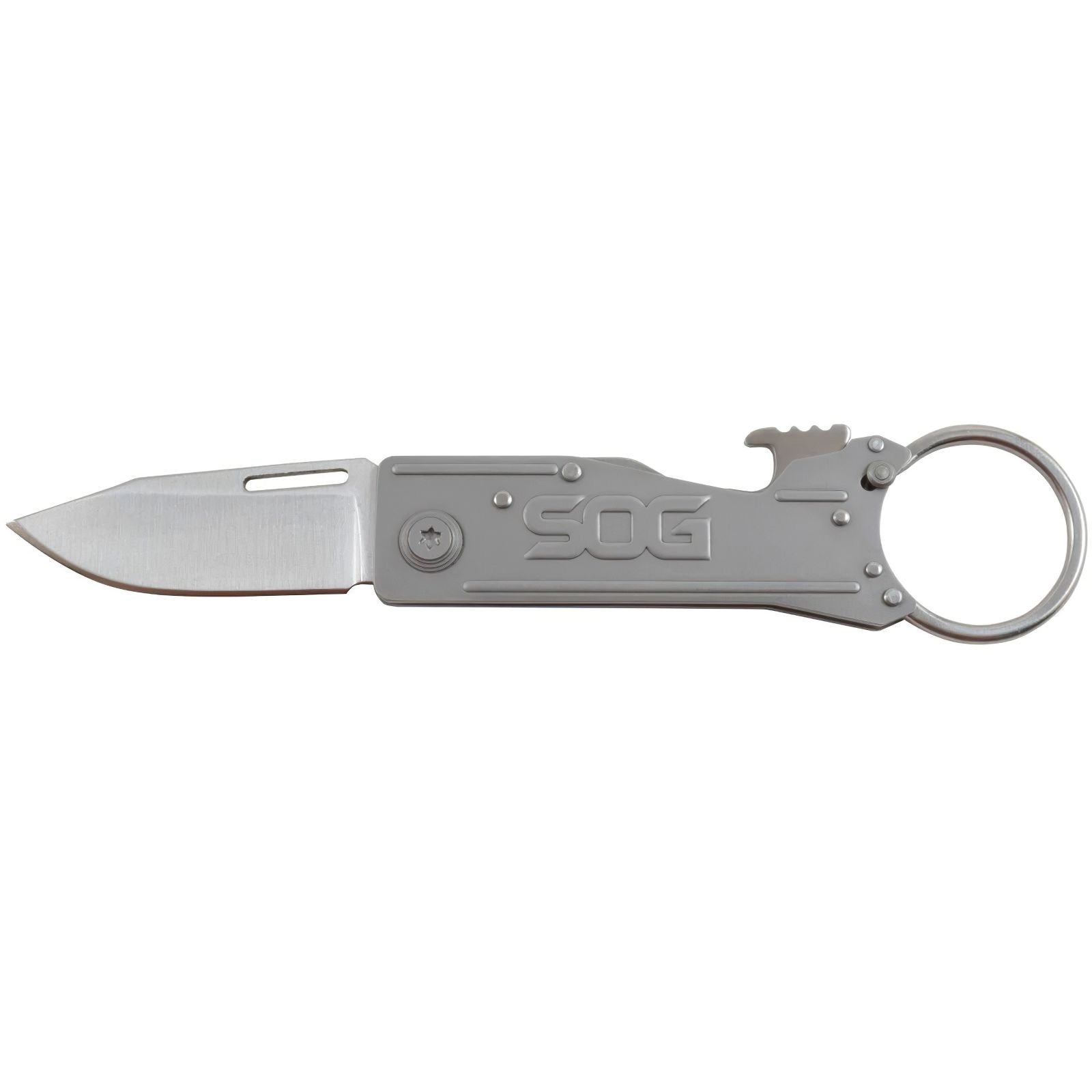 Вам нужна нож в дороге? SOG KeyTron - это складной нож, который отлично подойдет ко всему на вашей связке для ключей! Он оснащен 46 мм лезвием на тонкой и легкой рукоятке. Он также оснащен открывашкой для бутылок и имеет собственный брелок, который открывается простой защелкой. С KeyTron у вас будет такой же удобный нож, как и ключи от машины.
