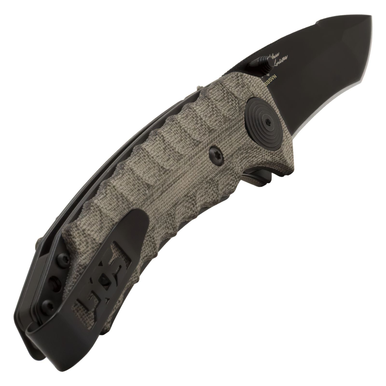 Рукоятка Linen Micarta - Микарта создается путем пропитывания слоев льняной ткани смолой и последующего их прижима. Она обеспечивает превосходное сцепление во влажных или сухих условиях и при использовании на ней образуется привлекательная патина.