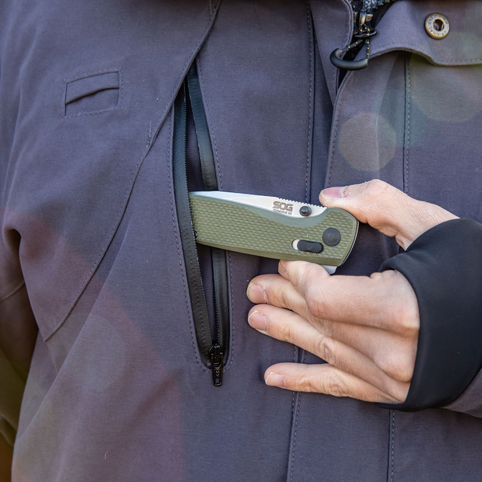 SOG Terminus XR Olive Drab - это универсальный складной нож, он оснащен качественным 75 мм лезвием из нержавеющей стали D2 и рукояткой из G10. Нож с скользящим шарниром и его легче чистить, обслуживать, и в нем меньше механических деталей, которые могут загрязняться и вызывать проблемы. Универсальное лезвие clip point BD1 с прямым краем из стали D2 отличается высокой прочностью и износостойкостью. Текстурированная ручка G10 и насечка на обухе лезвия обеспечивают упор большого пальца и улучшенный контроль во время использования. Небольшой плавник гарда на лезвии позволяет открывать и одновременно предотвращает случайное закрытие лезвия пальцами. Его тонкий профиль позволяет легко носить с собой с помощью двустороннего зажима в кармане штанов. Механизм фиксации XR работает быстро и регулируется в течение срока службы ножа. Нож полностью двусторонний, со сменным зажимом для ремня для ношения слева или справа. Три различных метода открытия: шпенька и большого пальца, XR замка и плавника гарды.