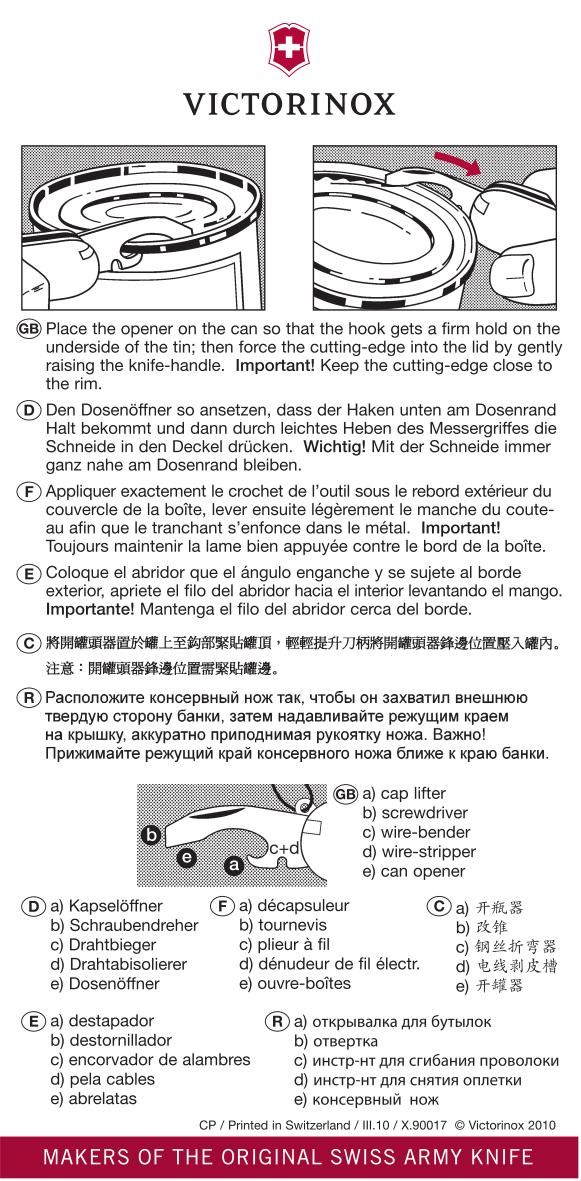 Швейцарская компания Victorinox производит и продает уникальную в своем роде высококачественную продукцию, такую как швейцарские армейские (офицерские и солдатские), кухонные ножи, столовые приборы, часы и множество других товаров. Швейцарский армейский нож является основным продуктом компании, именно его разработал в 1891 году основатель компании Карл Эльзенер. На сегодня эти ножи используются не только в армейских подразделениях, но и в походах, на рыбалке и охоте, а также в повседневной жизни. Благодаря многолетнему опыту, компания смогла сделать ножи компактными, легкими, но при этом они остались многофункциональными.