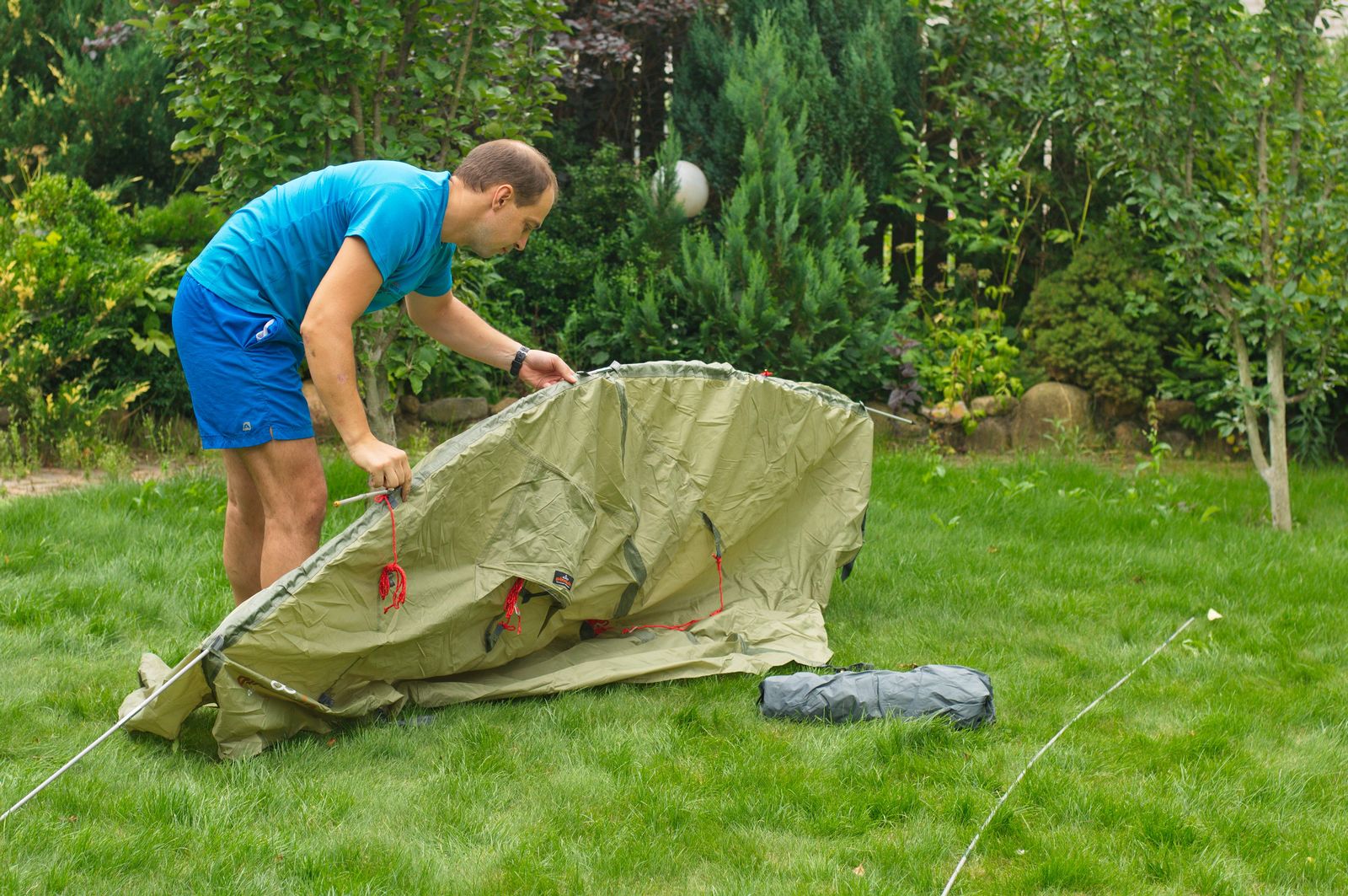 По размеру стоит ориентироваться на свой рост и объемы. Стоит сравнить объемы палатки со своими. Только нужно не забывать, что внутри шатра должны поместиться еще и вещи.
