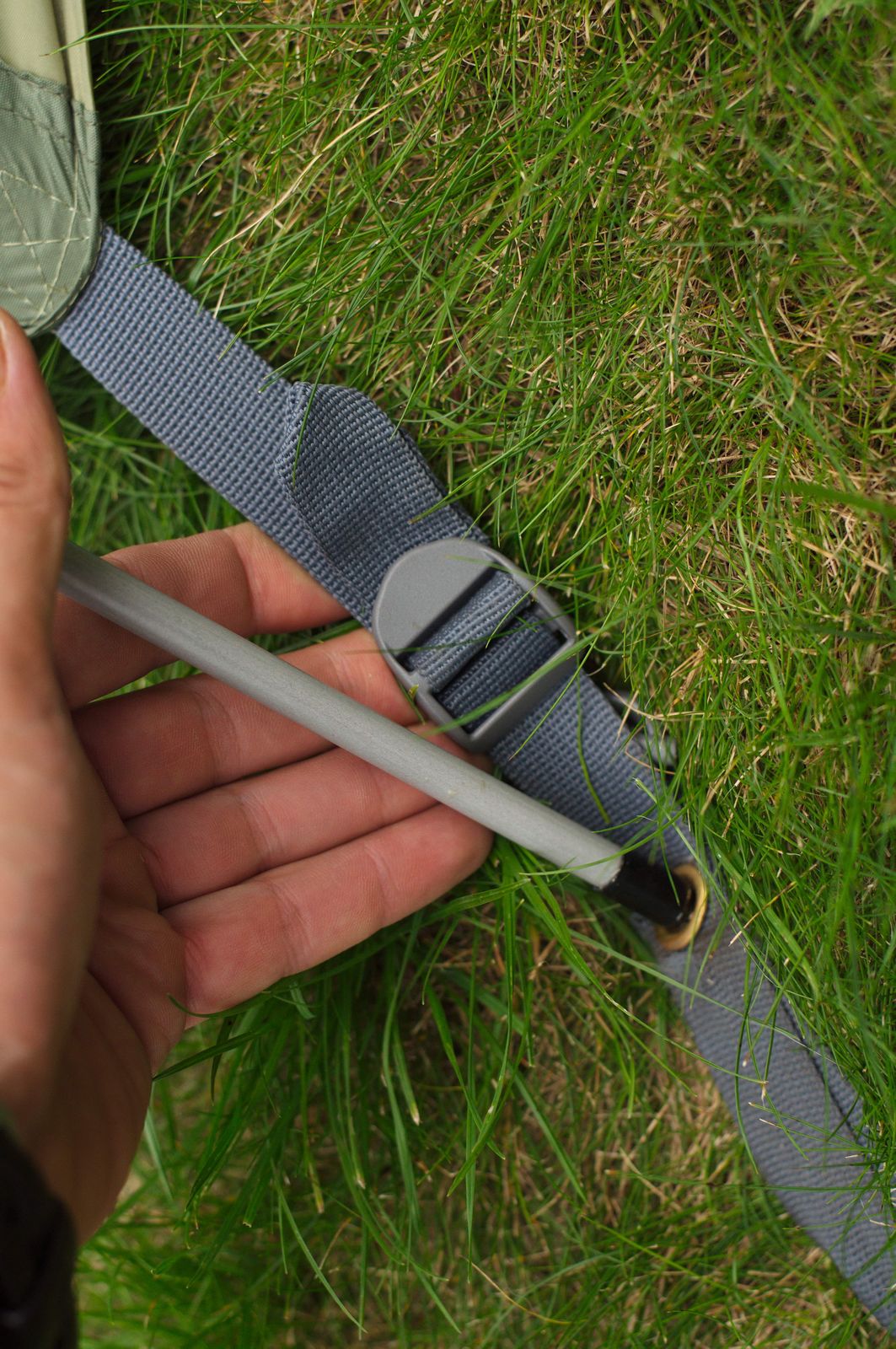При сборе всей конструкции получается шатер с полноценным тамбуром, в котором можно хранить багаж. Для каркаса используются ламинированные фиберглассовые сегменты. Они обладают достаточной прочностью, чтобы выдержать вес конструкции.