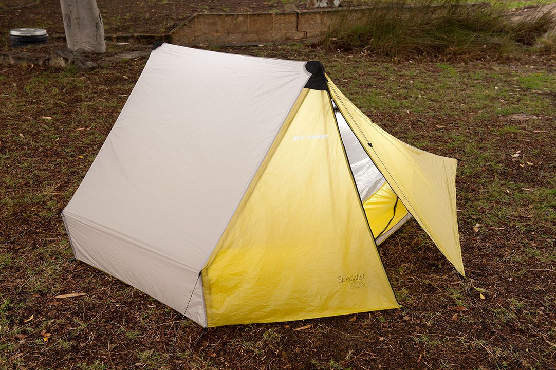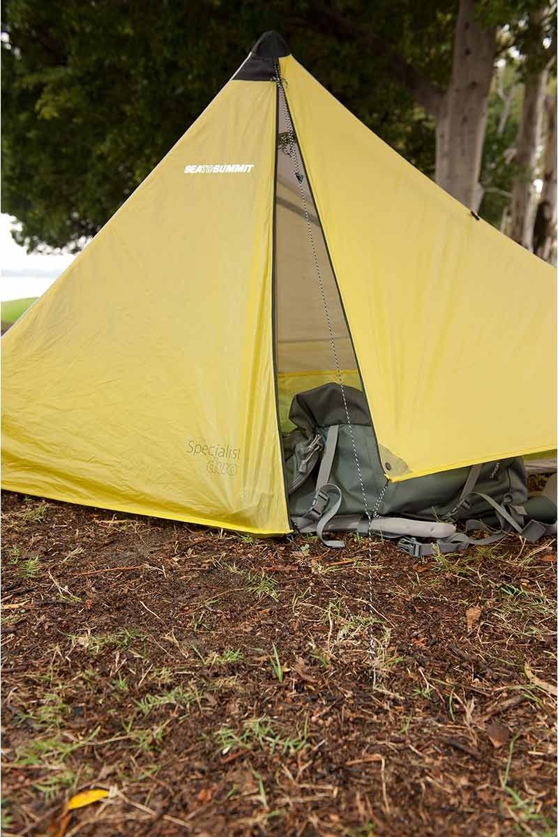 Экстремально легкая всего 864 грамма двухместная туристическая палатка Sea To Summit The Specialist Duo. Гибридная мембранная дышащяя 1-2 слойная конструкция, два тамбура и два входа защищенных антимоскитными сетками. Каркас палатки из двух складных алюминиевых стоек, может быть заменен вашими треккинговыми палками. Это супер вариант для ультра легкой туристической экипировки.