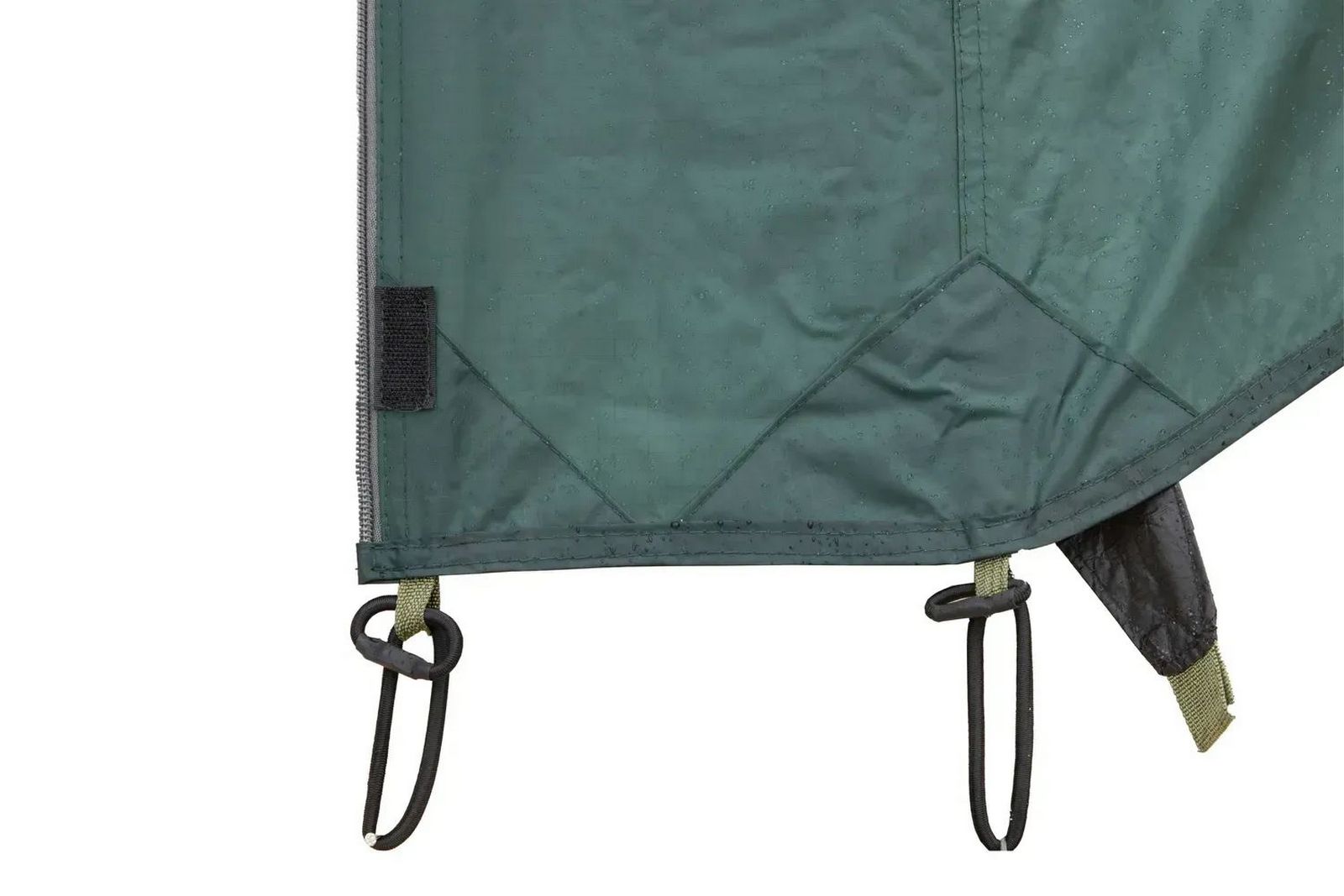 - внутренней палатки. Для изготовления использован полиэстер. Внутри она оснащена удобными и вместительными карманами, под потолком есть подвесная полка для дополнительного размещения вещей. Входы закрываются качественными молниями с двумя замками, их легко открыть, даже если руки заняты;