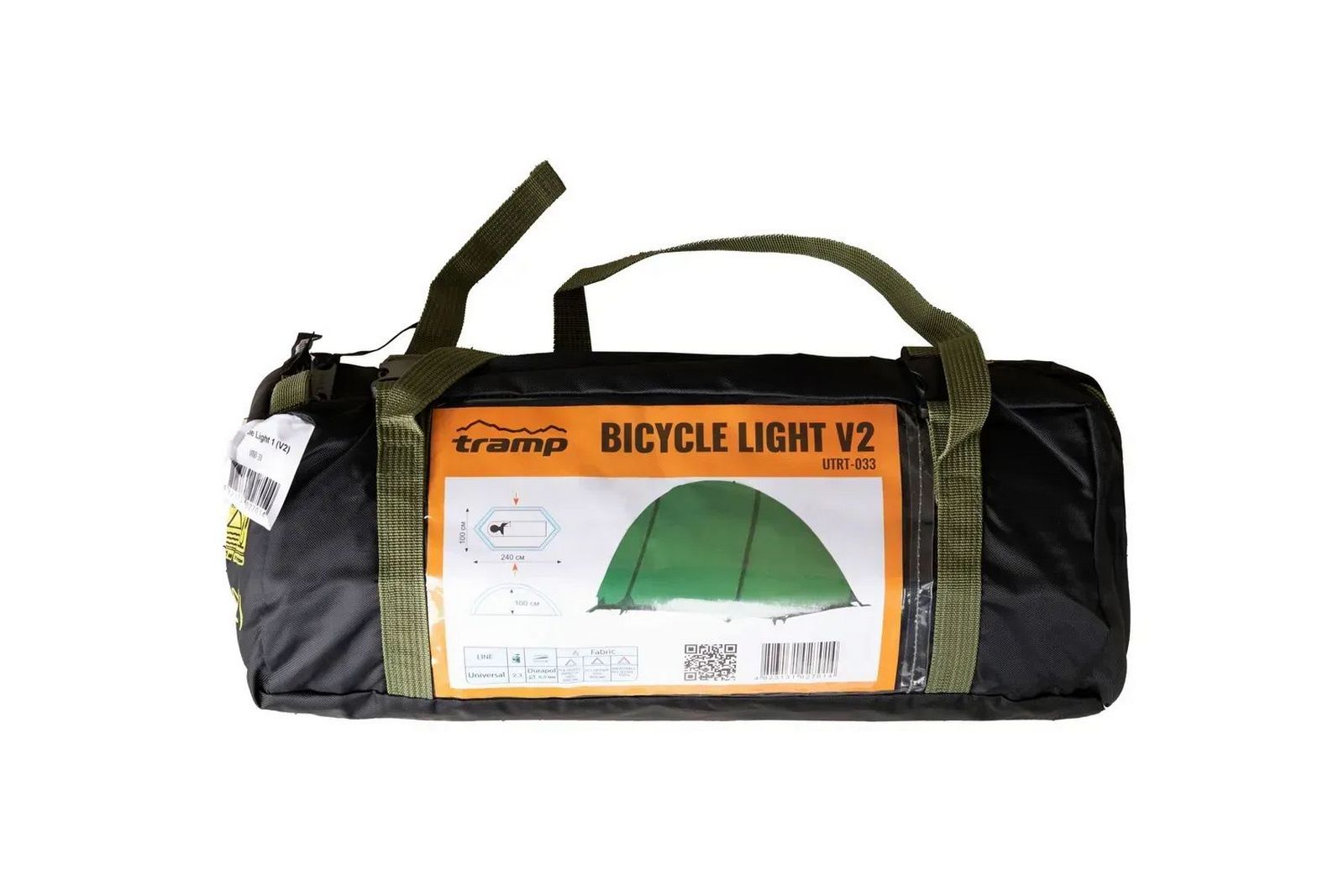 Tramp Bicycle Light 1 (V2) - легкий одномісний двошаровий туристичний намет з двома входами. Його можна встановити там, де намети більшого розміру встановити не вдасться. Завдяки малій вазі й компактності в складеному стані - відмінне рішення для велопоходів і літніх туристичних походів.