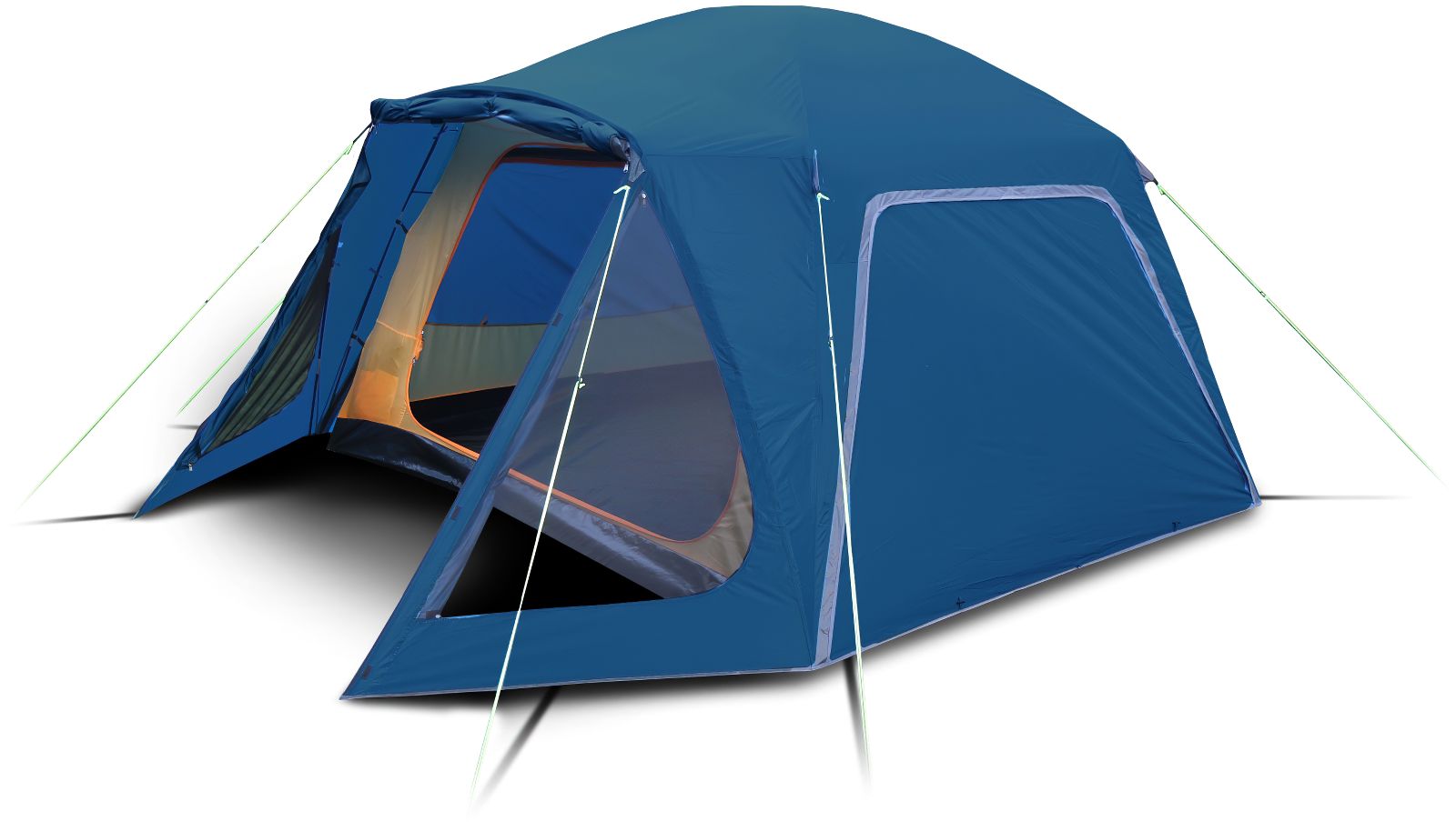 Палатка фиксируется с помощью высококачественных клипс ITW Nexus, которые регулируют натяжение внешнего тента, колышки - стальные. Тент палатки защищает от ультрафиолета. Вентиляцию гарантирует боковая панельная система, которая отцепляется и открывает боковые поверхности палатки для проветривания. Большой на всю ширину вход, обеспечивает превосходную вентиляцию и комфорт. В комплекте есть компрессионная сумка для транспортировки и хранения, и ремонтный набор. Такая палатка отлично подойдет для большой компании или семьи во время длительных путешествий или отдыха за городом.