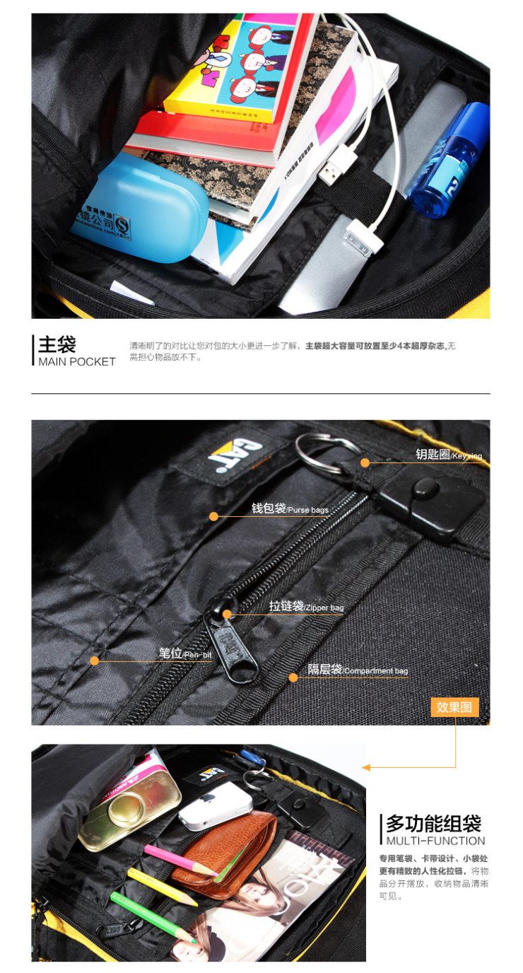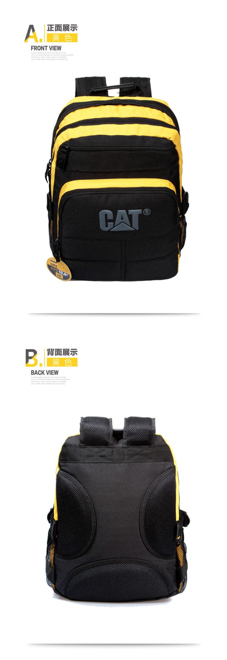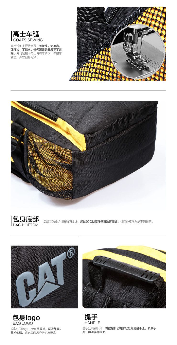 - отделение для ноутбука с диагональю 15'' - регулируемая грудная лямка - плоский карман на молнии - панель-организатор с отстегивающимся брелоком - карманы-сетка и стягивающие лямки по бокам - легковесная ткань - логотип Cat на задней панели