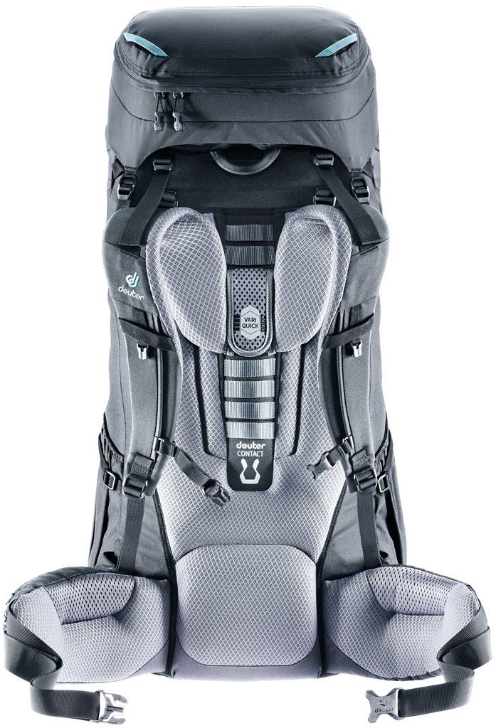 Спинка Deuter Contact System - регулируемая подвесная система спинки Vari Quick, позволяет вам выставить необходимую высоту согласно вашего телосложения, что в сочетании с плечевыми лямками, широким поясным ремнем и самой спинкой, оснащенными мягкими подушечками, которые плотно обнимают ваше тело, все это равномерно распределяют вес груза, снимая нагрузку с спины. Кроме того, грузы переносятся легче всего, когда они находятся близко к спине. Каналы между подушками, а также воздухопроницаемая и прочная подкладка из 3D сетки, обеспечивают приятную вентиляцию