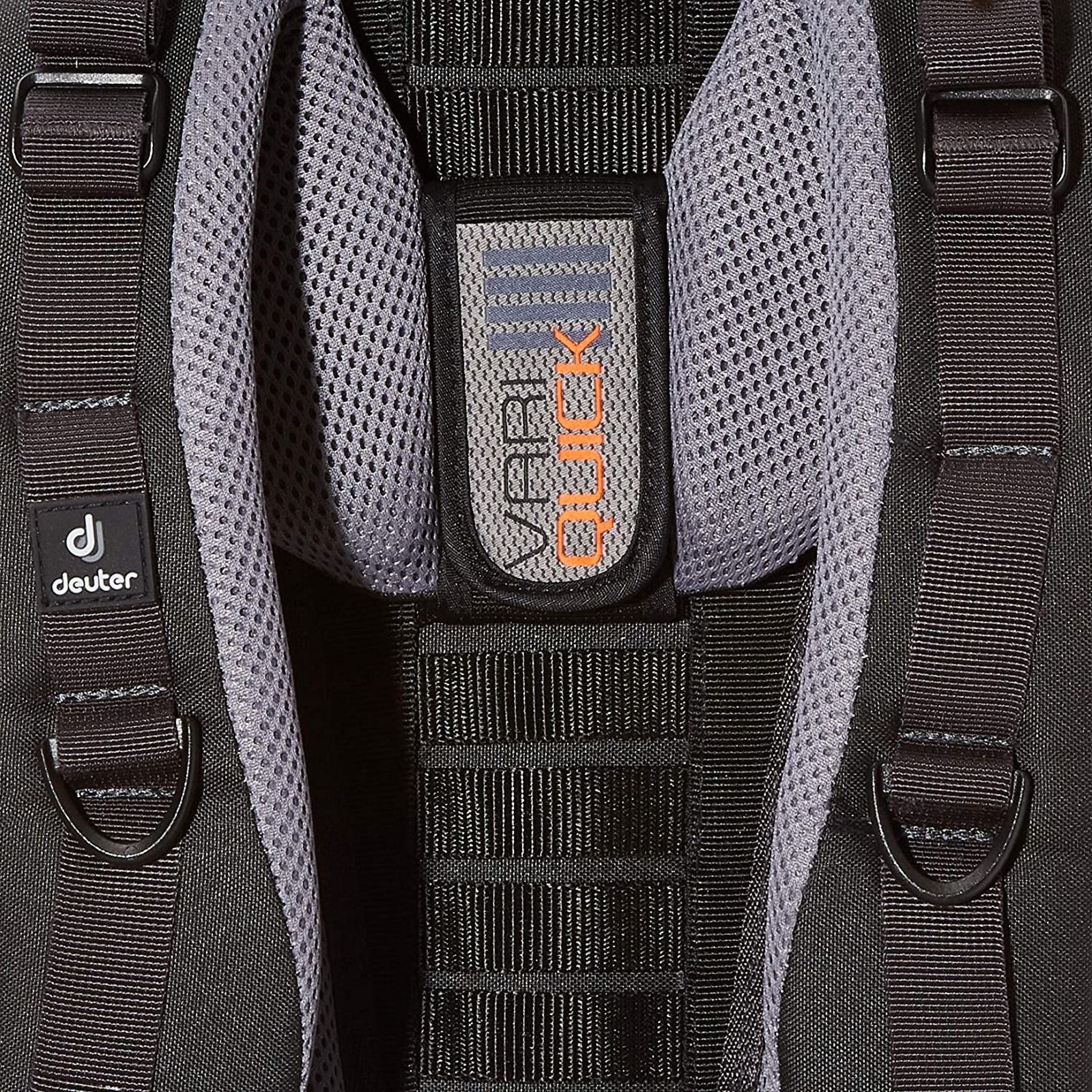 спинка Deuter Contact System - регулируемая подвесная система спинки Vari Quick, позволяет вам выставить необходимую высоту согласно вашего телосложения, что в сочетании с плечевыми лямками, широким поясным ремнем и самой спинкой, оснащенными мягкими подушечками, которые плотно обнимают ваше тело, все это равномерно распределяют вес груза, снимая нагрузку с спины. Кроме того, грузы переносятся легче всего, когда они находятся близко к спине. Каналы между подушками, а также воздухопроницаемая и прочная подкладка из 3D сетки, обеспечивают приятную вентиляцию