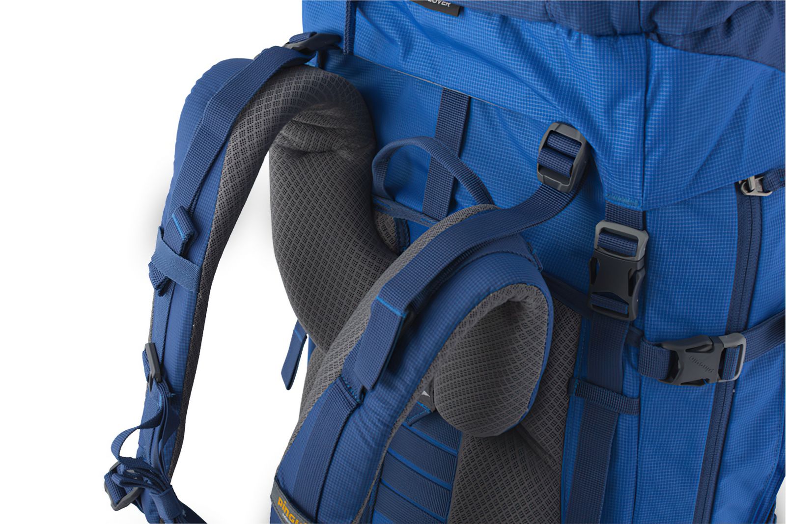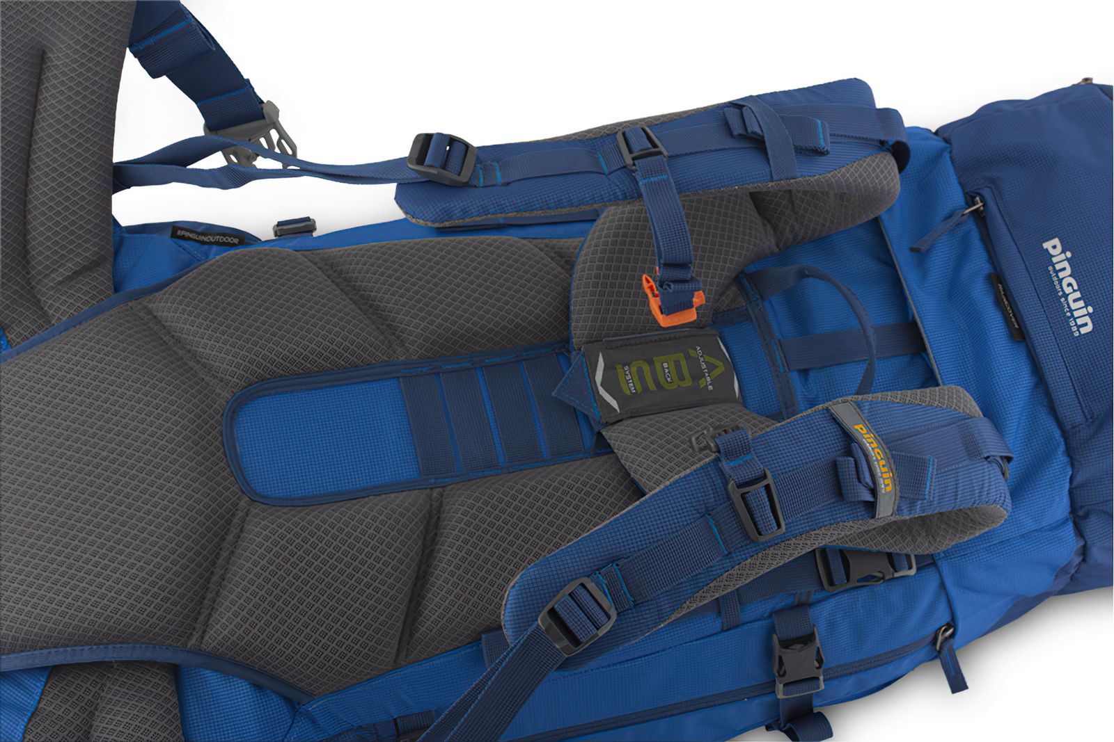 ABS Система спины и плечевые балансировочные лямки, система регулируемая по высоте для максимальной подгонки под фигуру, удобная, сшитая из ABS пластика с мягкими подушками, покрытыми воздухопроницаемой 3D сеткой, обеспечивает эффективную вентиляцию спины при сохранении оптимального распределения нагрузки. Задняя часть рюкзака усилена парой дюралюминиевых профилей и плитой HDPE (полиэтилен высокой плотности), что помогает распределить вес транспортируемого груза на спине и устраняет давление транспортируемых предметов в спину и плечи.