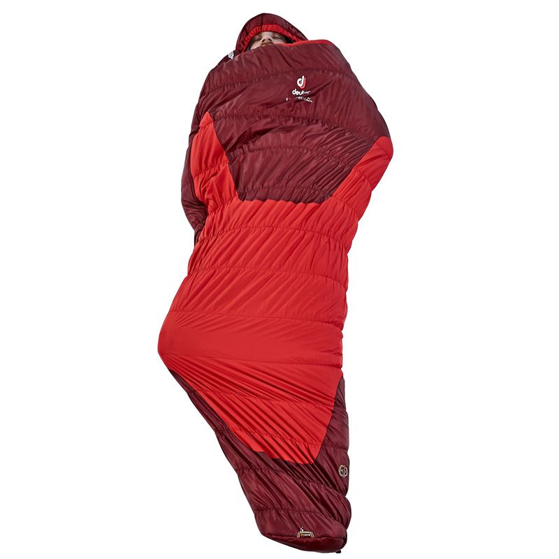 Универсальный спальный мешок, кокон Дойтер Exosphere -4° рассчитан на использование в холодную часть весенне-осеннего периодов года. Спальник сделан из прочной и приятной на ощупь ткани, утеплен мягким синтетическим наполнителем, с утепляющими вставками из флиса в области рук, поясницы и ступней. Уникальная конструкция Deuter которая обеспечивает расширение спального мешка более, чем на 25%.