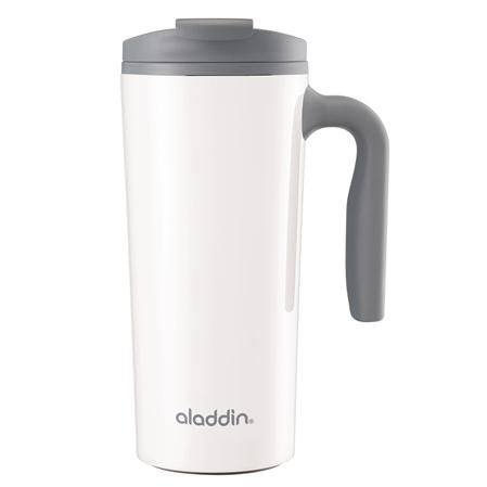 Термокружка Aladdin Aveo обьемом 0,47 литра. Двойная стенка с пеноизоляцией, где внешняя стенка из нержавеющей стали и внутренняя поверхность кружки пластиковая. Крышка- непроливайка откручивающаяся с закрывающимся клапаном для питья. Мягкая обрезиненная рукоятка.