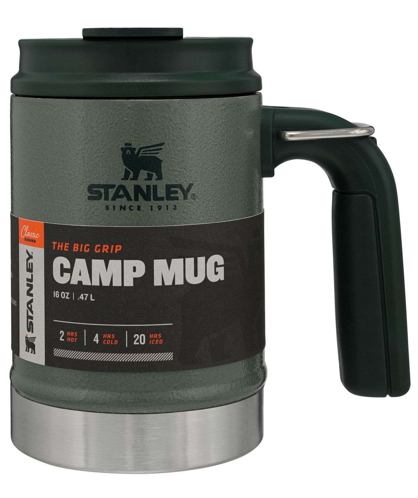 В кемпинге или на стройплощадке эта прочная термокружка Stanley Classic Big Grip Camp объемом 0,47 литра, позволяет легко пить кофе даже в рабочих перчатках. Прочная ручка имеет более широкий проем, поэтому вы можете надежно захватить ее, а герметичная крышка откидывается, когда нужно совершить глоток, и плотно закрывается, когда необходимо закрыть.