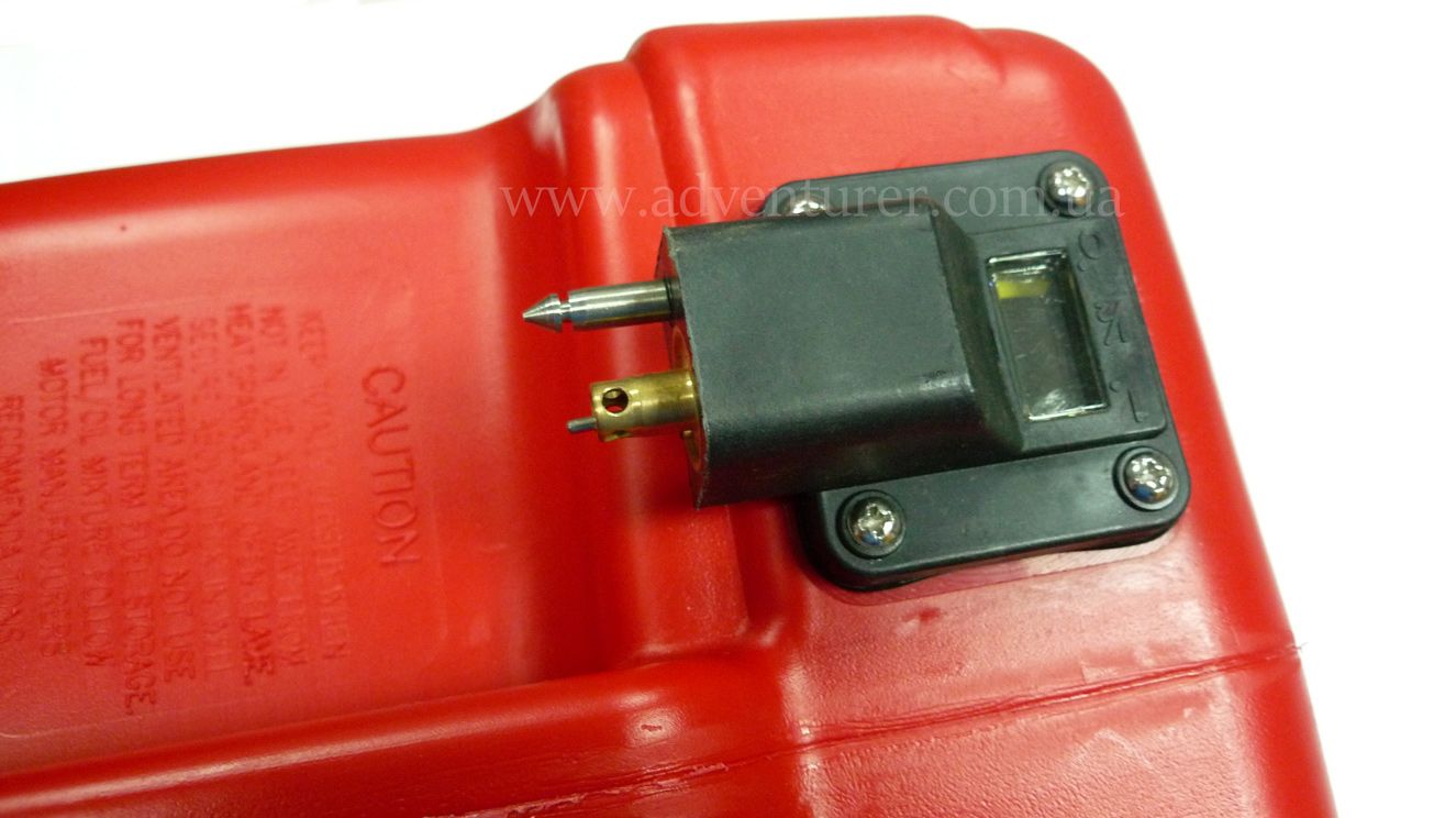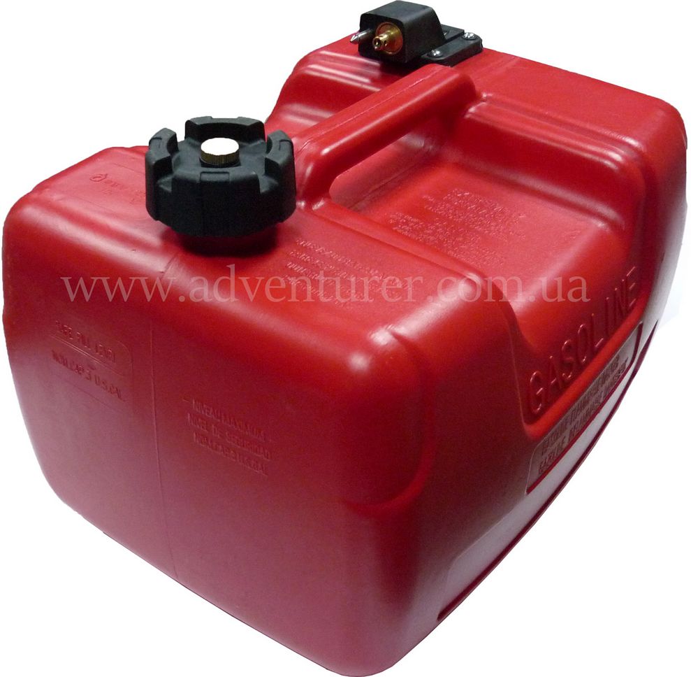 Пластиковий паливний бак переносний горизонтальний об'ємом 12 літрів для підвісних човнових моторів. Заливна горловина з пластиковою кришкою на різьбі з вбудований регульованою повітряної пробкою, датчик рівня палива і коннектор для підключення толпливного шланга. Бак може використовуватися для бензину, дизельного палива, гасу. Бак виготовлений з поліетилену високої щільності, який не кородує, не мнеться і найголовніше не накопичує статичний заряд.