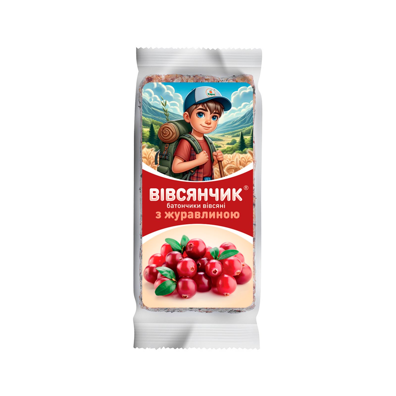 Батончик вівсяний з журавлиною Вівсянчик Харчі - сублімована туристична їжа для походів. Складається з: вівсяні пластівці, журавлина сушена, кокосове масло, глюкозно-фруктозный сироп. Страву виготовлено методом сушіння натуральних продуктів без використання консервантів та ГМО.
