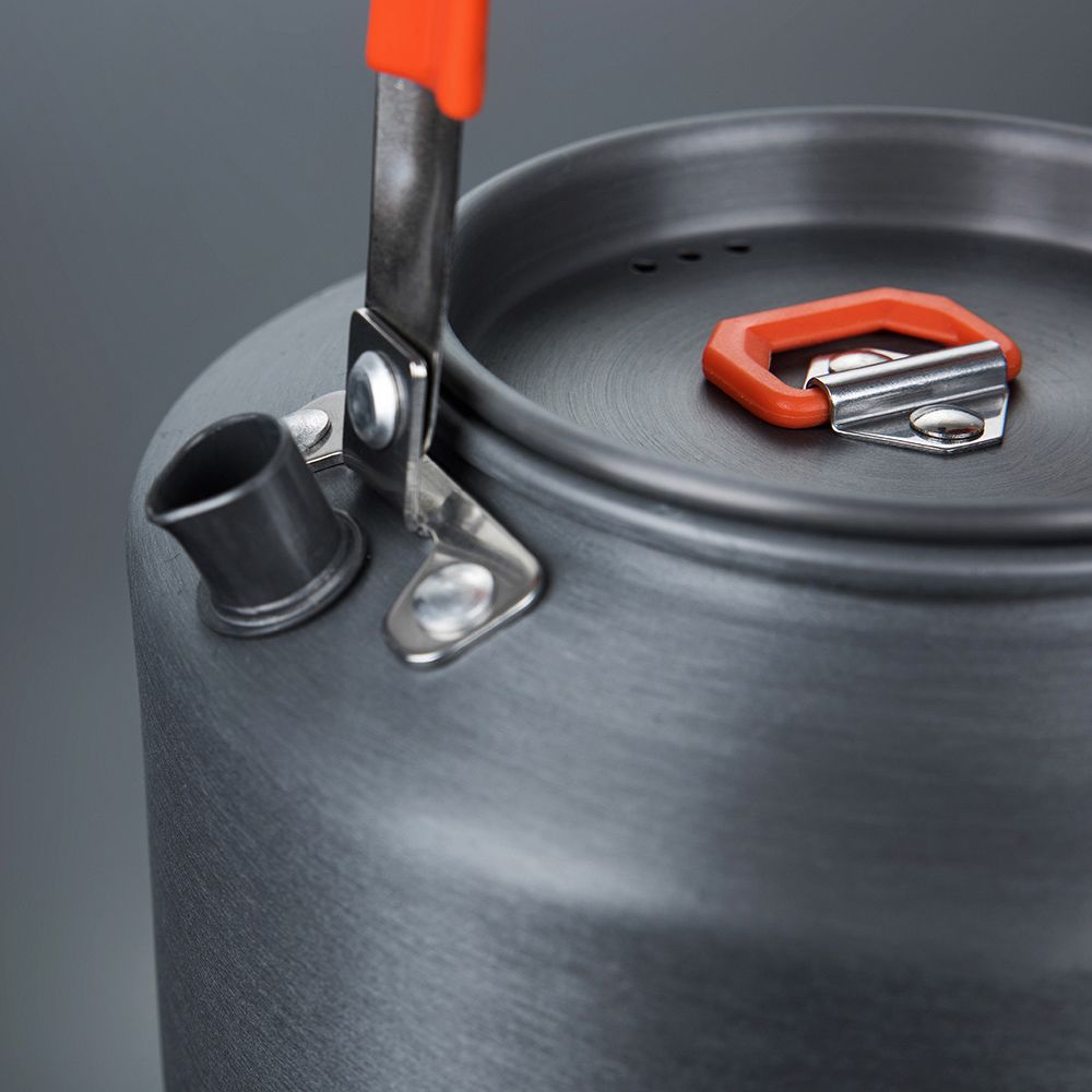 Похідний чайник Fire Maple Feast XT2 об'ємом 1,5 літра з анодованого алюмінію з теплообмінним елементом, радіатором привареним точкової зварюванням в області днища, який збільшує ККД від використання теплової енергії на 30%, що в свою чергу економить паливо і час приготування. Чайник має знімну кришку зі стравливающими отворами і ручкою з термопластику, також спеціальне ситечко для заварки, яке робить приготування чаю або кави більш зручним. Складна ручка з покриттям з термопластика дозволяють зручно утримувати чайник.