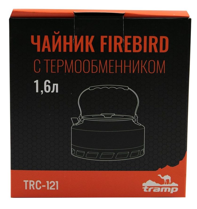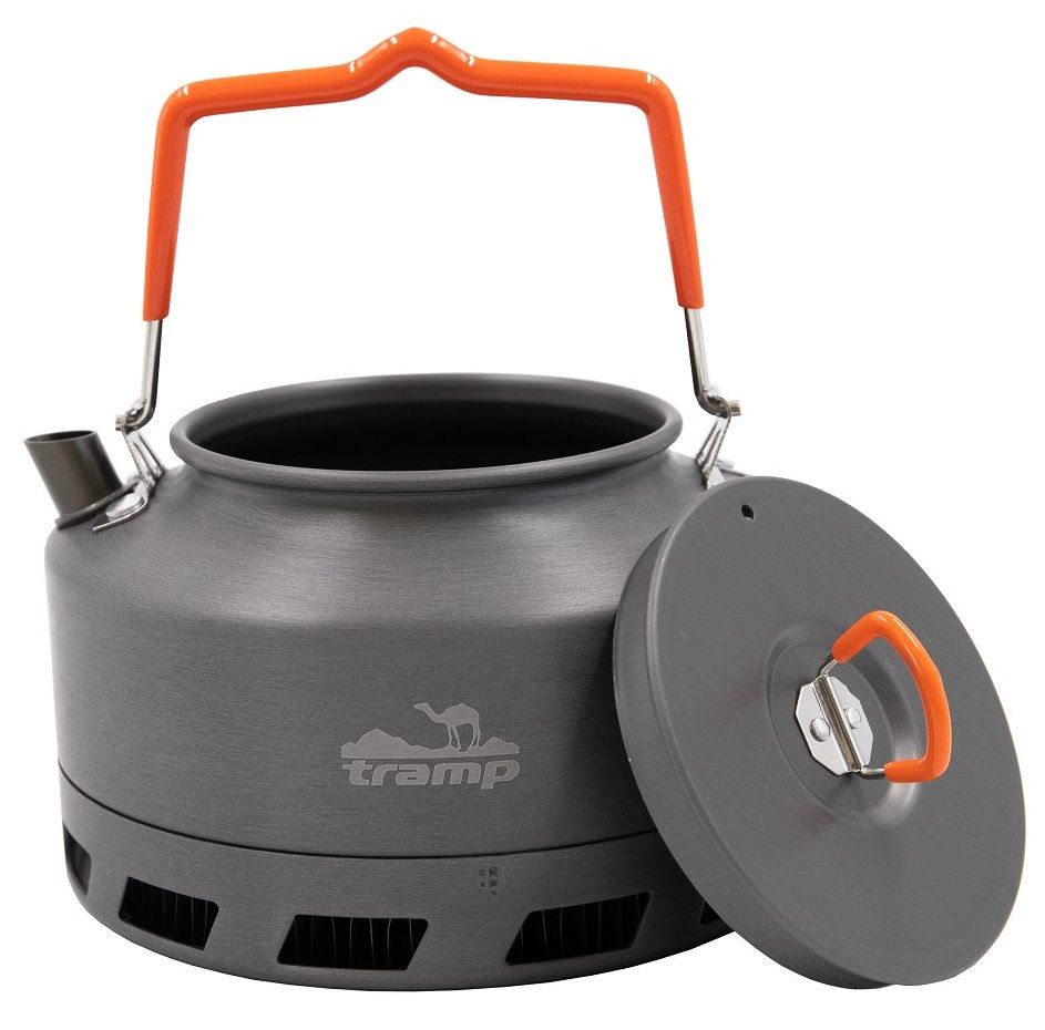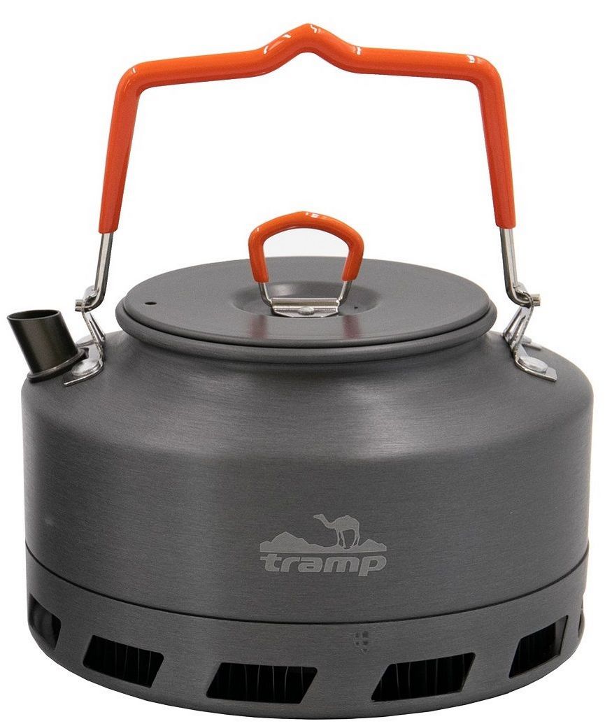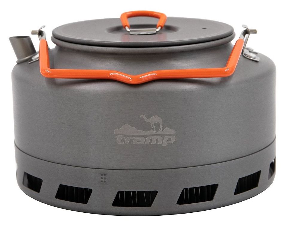 Похідний чайник Tramp TRC-121 об'ємом 1,6 літра з анодованого алюмінію з теплообмінним елементом, радіатором привареним точковим зварюванням в області дна, який збільшує ККД від використання теплової енергії на 30%, що в свою чергу економить паливо і час приготування. Чайник має знімну кришку з отворами для стравлювання пару і ручкою з термопластика. Складна ручка з покриттям з термопластика дозволяють зручно утримувати чайник.