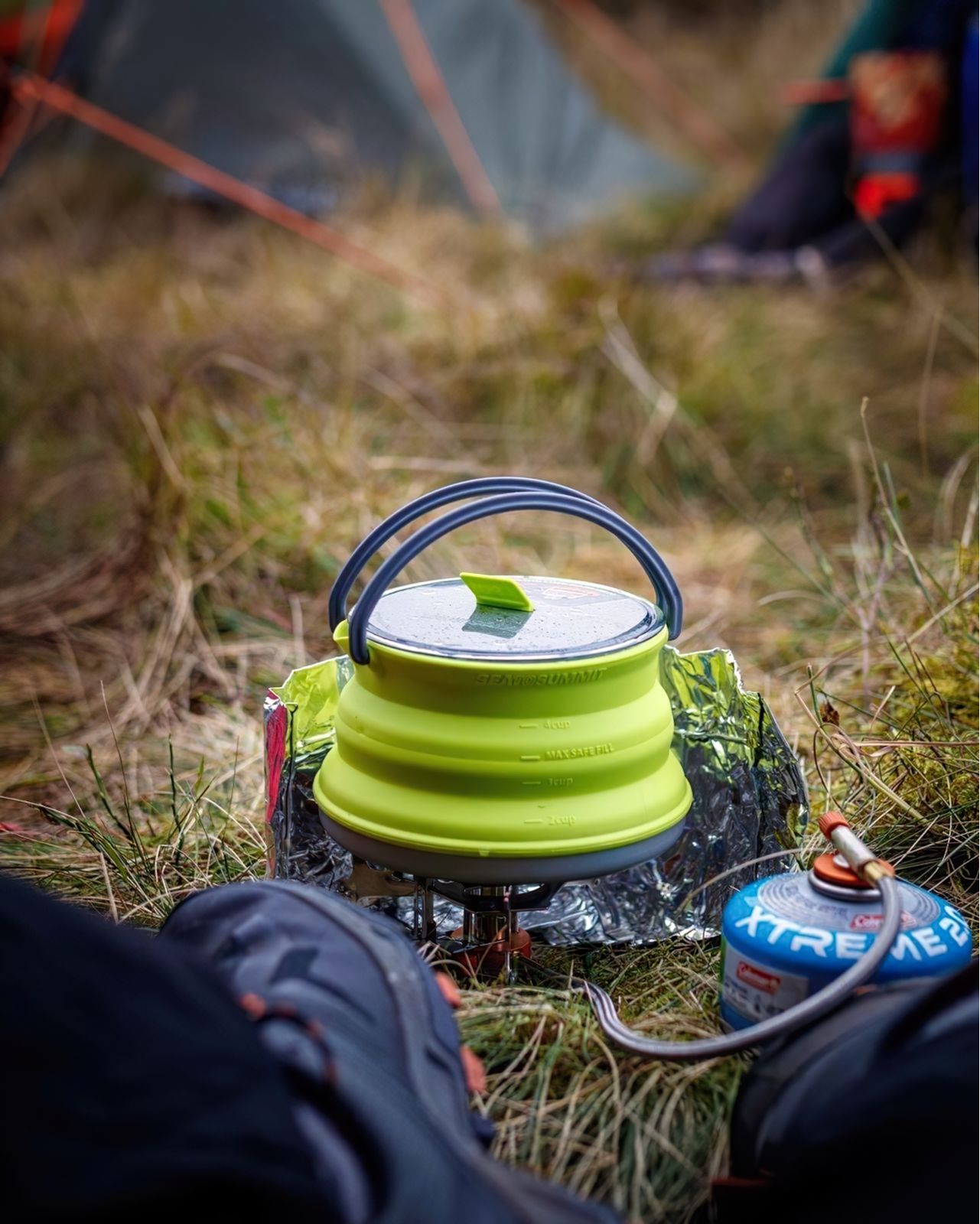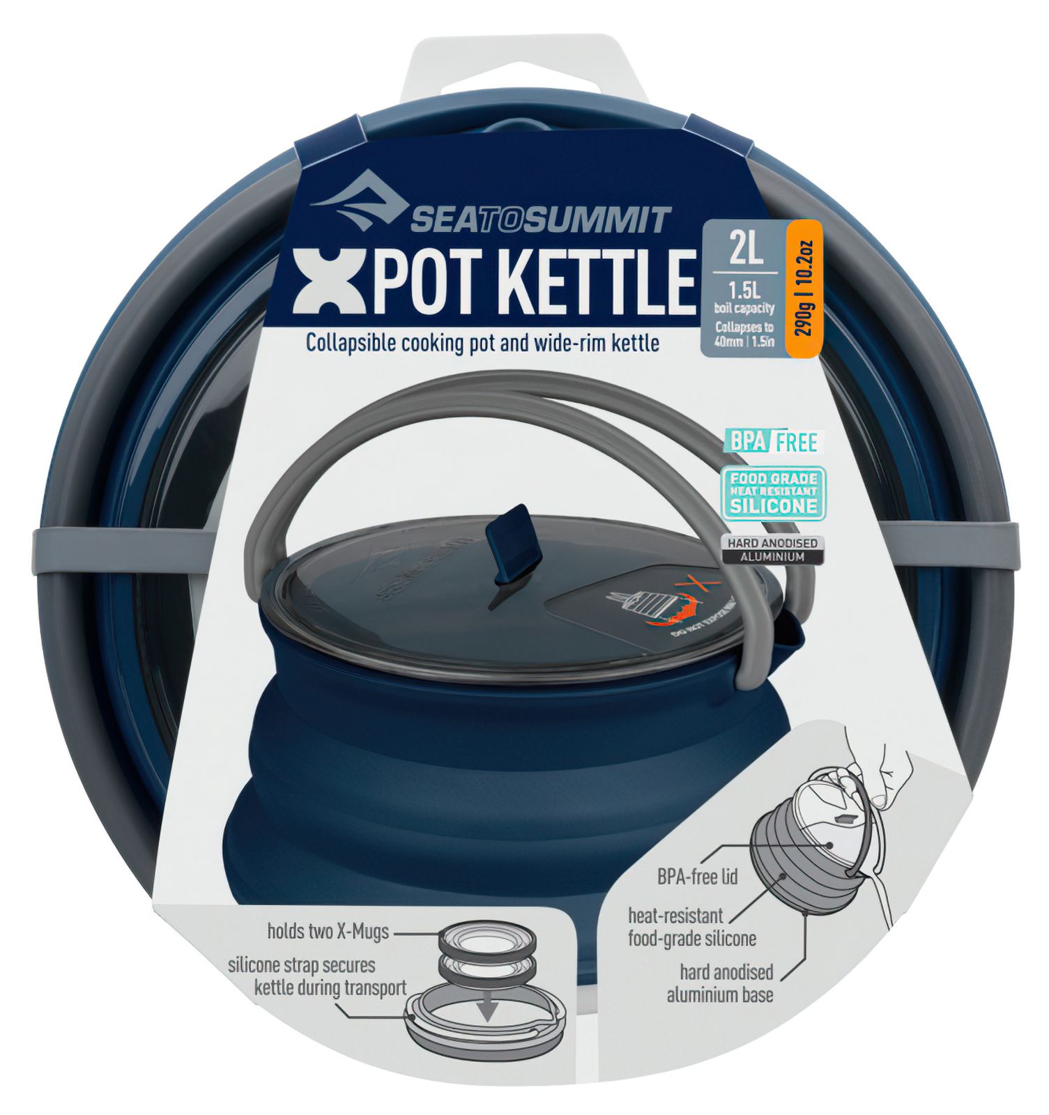 Це казанок або чайник? Це і те, і інше - це ідеальне універсальне рішення для швидкої і легкої готування на природі. Чайник Sea to Summit X-Kettle™ об'ємом 2,0 літра має ті ж відзначеними нагородами інноваційні, компактні, складіні і функціональні характеристики, що і інші продукти серії X-Pot™. Дно чайника з твердого анодованого алюмінію добре проводить тепло, складні стінки з харчового силікону, роблять його максимально компактним при транспортуванні, а прозора кришка Tritan® дозволяє бачити, коли вода закипає. Він відмінне рішення для повільного або швидкого кип'ятіння води для ранкової кави, для сублімованої їжі або простих, але вишуканих похідних страв на двох. Ідеально підходить для всіх піших, вело-мото і водних туристів, а також відпочиваючих на автомобілі.