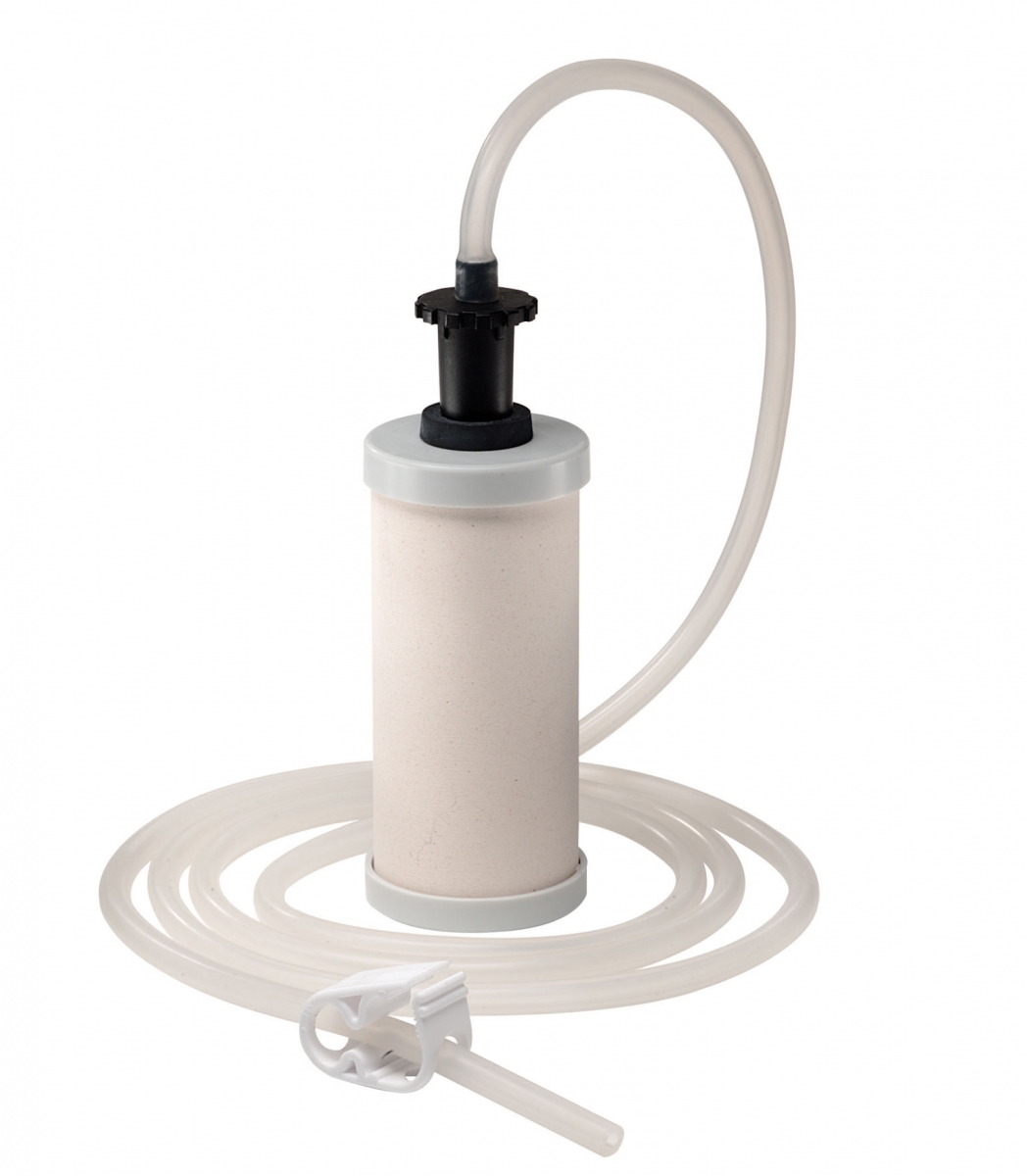 Усуває з води бактерії, найпростіші, водорості, каламуть, спори і цисти. Працює завдяки гравітації. Швидкість фільтрації: до 5 л на годину. Ресурс картриджа — до 20 000 літрів.