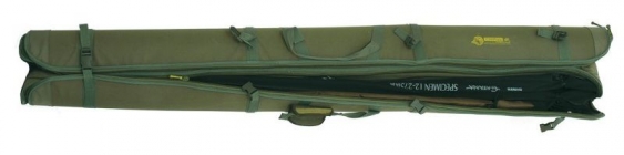 Опис: Кофр для вудок і спінінгів напівжорсткий, 2-х секційний з фіксованим кріпленням вудилищ, розрахований на 8 спінінгів без котушок, підсаку, стійки для вудок і дрібні аксесуари.