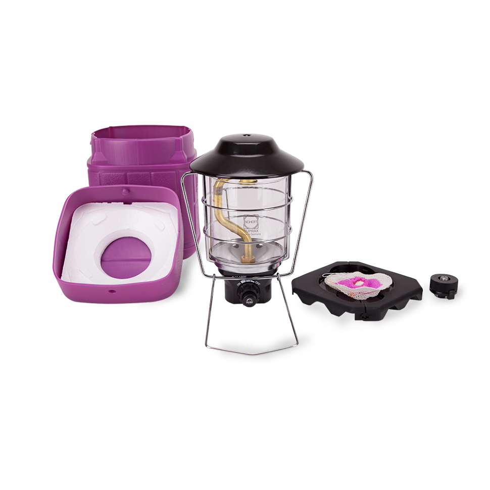 - комплектация: газовая лампа, пластиковый футляр, сеточка, переходник на цанговый баллон, подставка под баллон, инструкция по эксплуатации