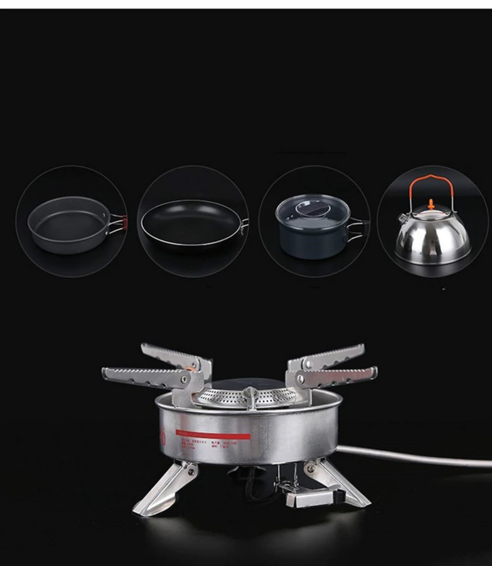 - Широка комфорка потужністю 2270 кВт, 3 складних ніжки і 3 складних опори для посуду