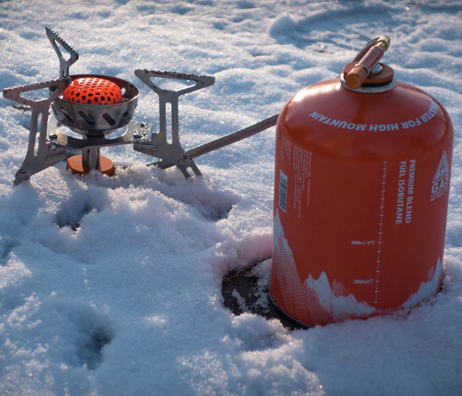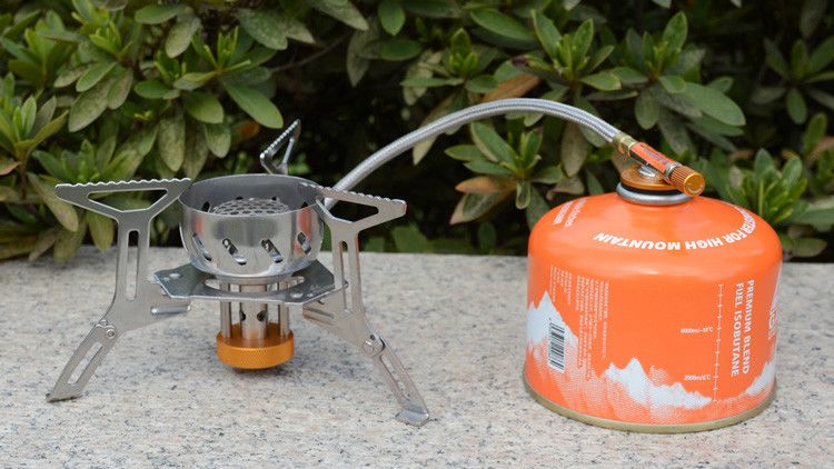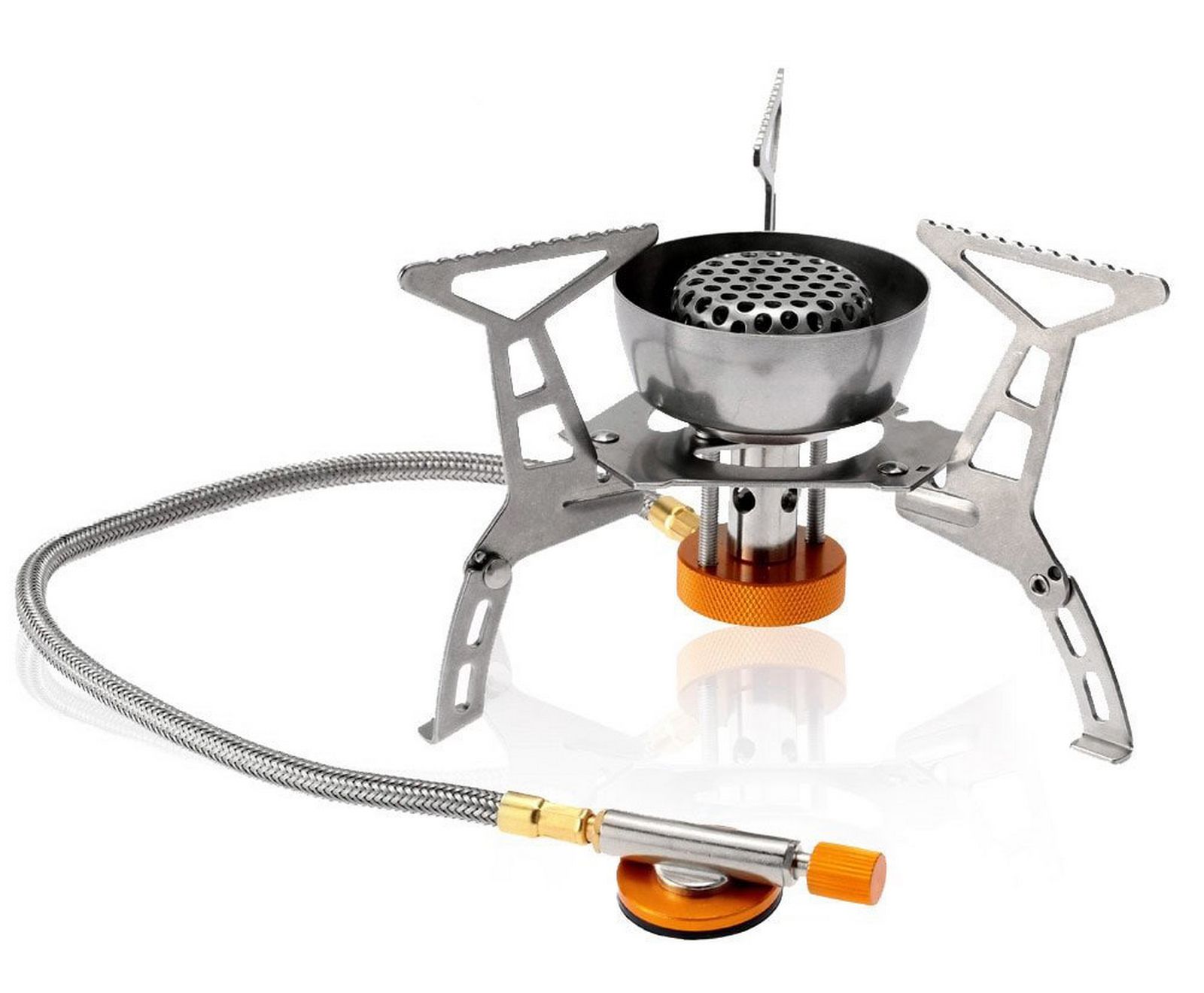 Потужний газовий пальник зі шлангом Fire-Maple FMS-121. Обладнаний вбудованим вітрозахистом, складаними опорами під посуд і складними ніжками, витримує навантаження від посуду вагою в 5 кг Працює від будь-якого різьбового одноразового балона або цангового балона, якщо докупити перехідник.