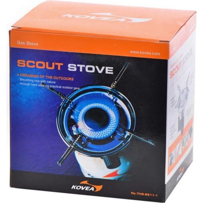 Популярний кемпінговий туристичний газовий пальник Kovea TKB-8911-1 Scout Stove з п'єзопідпалом. Завдяки збільшеному розміру голівки полум'я газового пальника TKB-8911-1 розходиться широко в сторони, що зменшує вірогідність пригорання їжі. Розкладні лапки конфорки газового пальника TKB-8911-1 дозволяють використовувати посуд великого розміру і приготувати їжу на декілька людей. Тепловідбивний екран круглої форми економить паливо і ефективно відбиває тепло газового пальника TKB-8911-1 на дно каструлі, збільшуючи тим самим ККД.