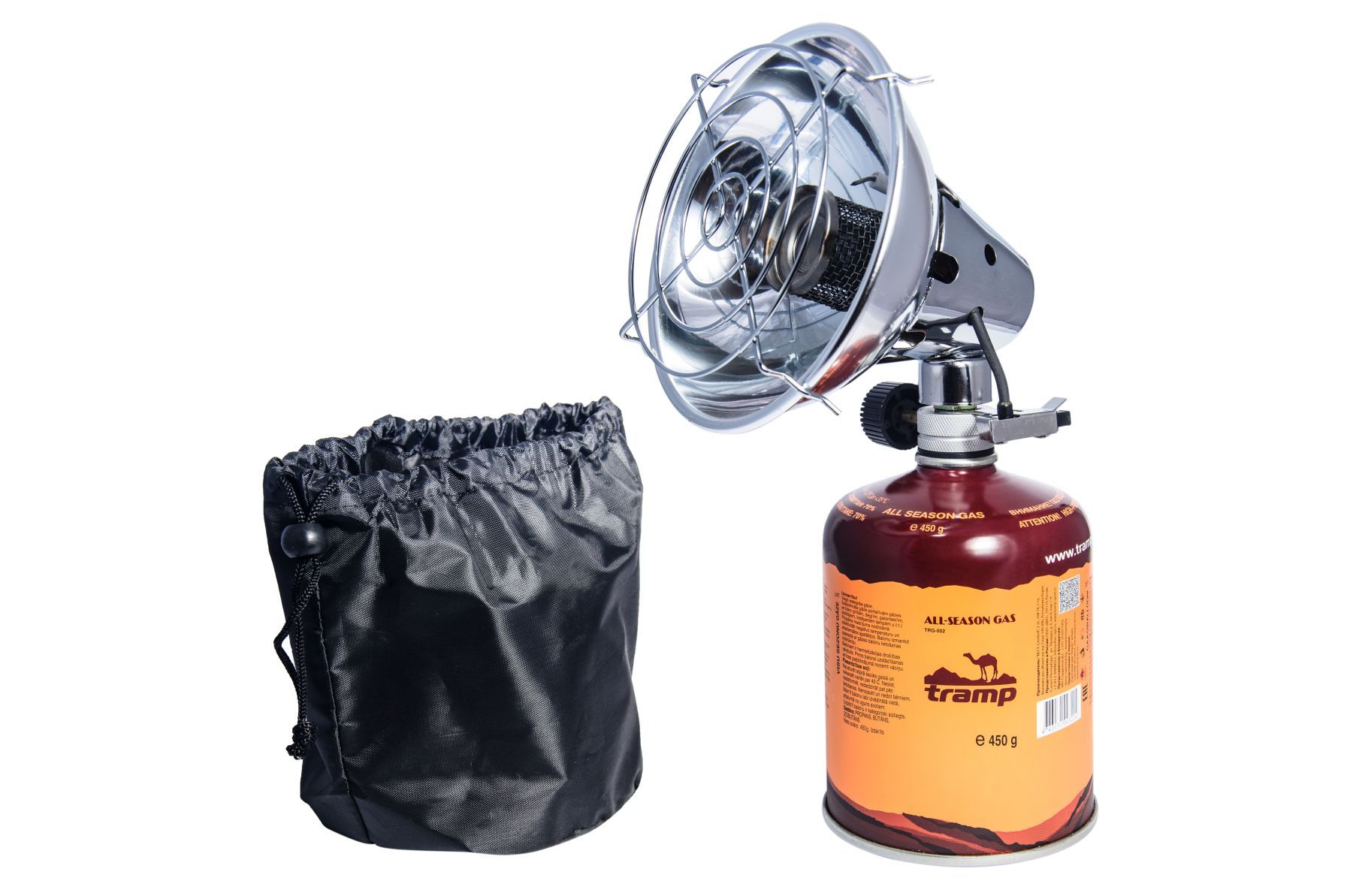 Портативный ручной газовый обогреватель Tramp TRG-035, предназначен для для обогрева палаток, временных убежищ, автомобилей, небольших комнат, трейлеров, вагончиков, гаражей. Рекомендуется для использования в походе, на кемпинге, во время рыбалки и охоты. Огреватель не имеет открытого пламени и нагревает предметы вокруг себя, которые в свою очередь уже отдают тепло вокруг себя, что предотвращает циркуляцию пыли.