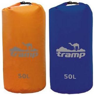 Гермомішок Tramp об'ємом 50 літрів з міцної 100% водонепроникної ПВХ тканини, який можна переносити як рюкзак. Система закривання RollProff, знімні плечові лямки.