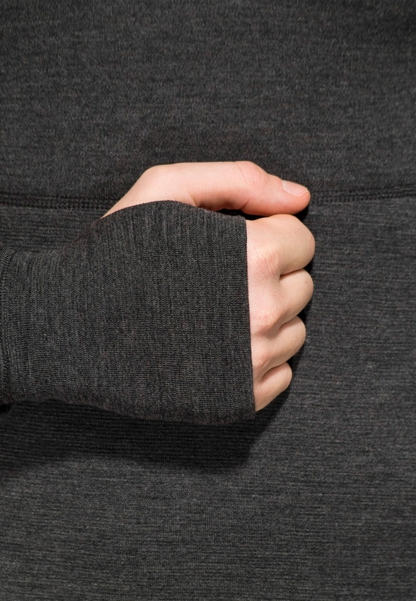 Рукави мають подовжені манжети з м'якою прорізом для великого пальця, а на животі передбачений затишний і теплий кишені для рук.