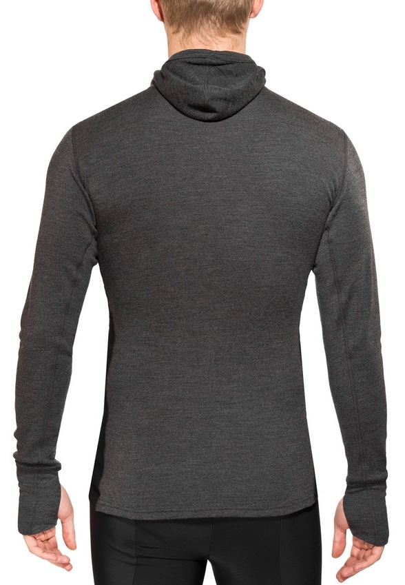 Светр оснащений унікальним капюшоном-трансформером, який можна використовувати як балаклаву, як високий комір або просто відкинути за спину, де він залишається плоским, не заважає і не настовбурчується під верхнім одягом.