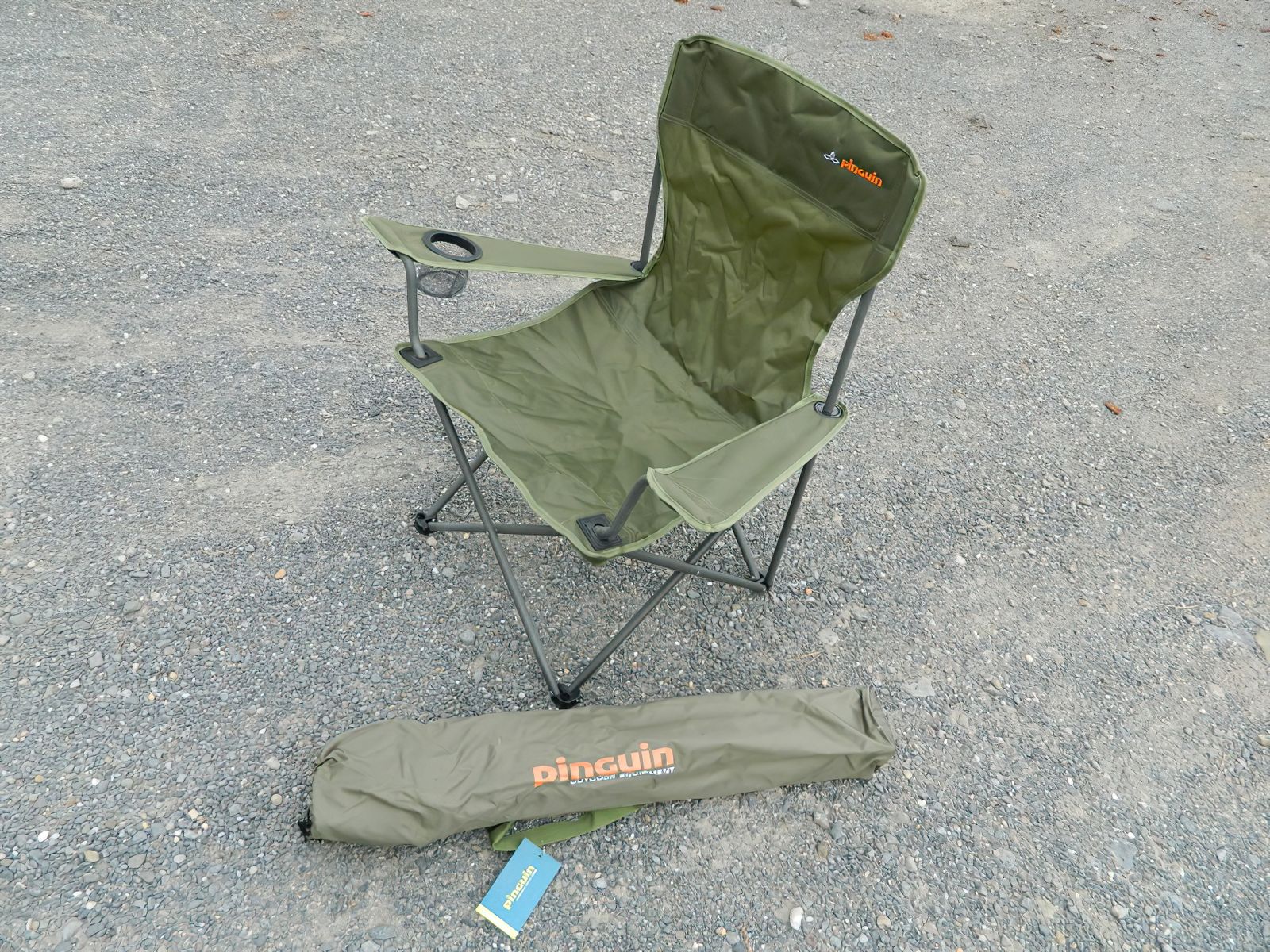 Легке складане крісло Pinguin Fisher для кемпінгу і відпочинку на природі з підлокітниками і підсклянником для напоїв.