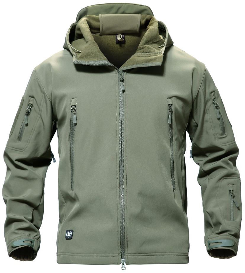 Репліка тактичної куртки TAD V 4.0 зроблена з вітро - водостійкого Soft Shell Shark Skin акуляча шкіра поліестерового матеріалу з мікрофлісовой підкладкою. Вентиляційні отвори під руками на блискавках. Високий комір, зручний глибокий капюшон з козирком, який складається в комір. Два великих грудних кишені з виходами для навушників, внутрішнім миникарманом і пластиковим кільцем, три кишені на рукавах з велкро патчами для кріплення нашивок, великий двосторонній вентиляційний кишеня на попереку. Регульовані затяжки на вортнике/капюшоні, в області пояса за допомогою еластичного шнура, ширина манжетів з велкрофиксацией. Колір Army Green. Розмір XXL.