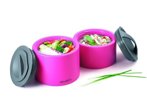 Це набір з двох (0,6 і 0,35 л) ланчбокс Aladdin Bento сполучених між собою пропонує для ваших страв ємність 0,95 літра і дозволяє переносити до трьох блюд одночасно. Ланчбокс для їжі або харчовий термос в рівній мірі підходить для гарячих і холодних страв. Його подвійні стінки з ізоляцією з піни збережуть вміст гарячим або холодним протягом 4-5 годин. Просто додайте в нього свою улюблену страву, поставте його на ніч в холодильник, а на ранок розігрійте в мікрохвильовій печі і ви зможете насолодитися гарячою їжею в обід.