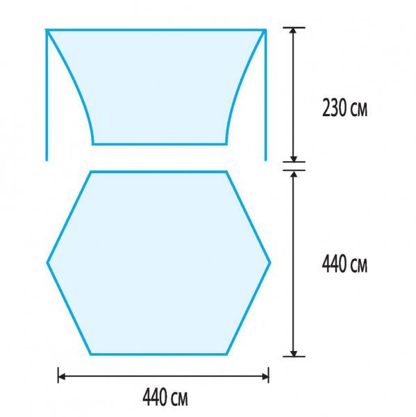 Великий туристичний тент із стійками Sol Tent розміром 4,4 на 4,4 метра. Легка і проста установка за рахунок мотузок і двох стійок 2,3 заввишки кожна. Тент можна використовувати в якості намети або просто навісу для захисту від дощу і сонячних променів.
