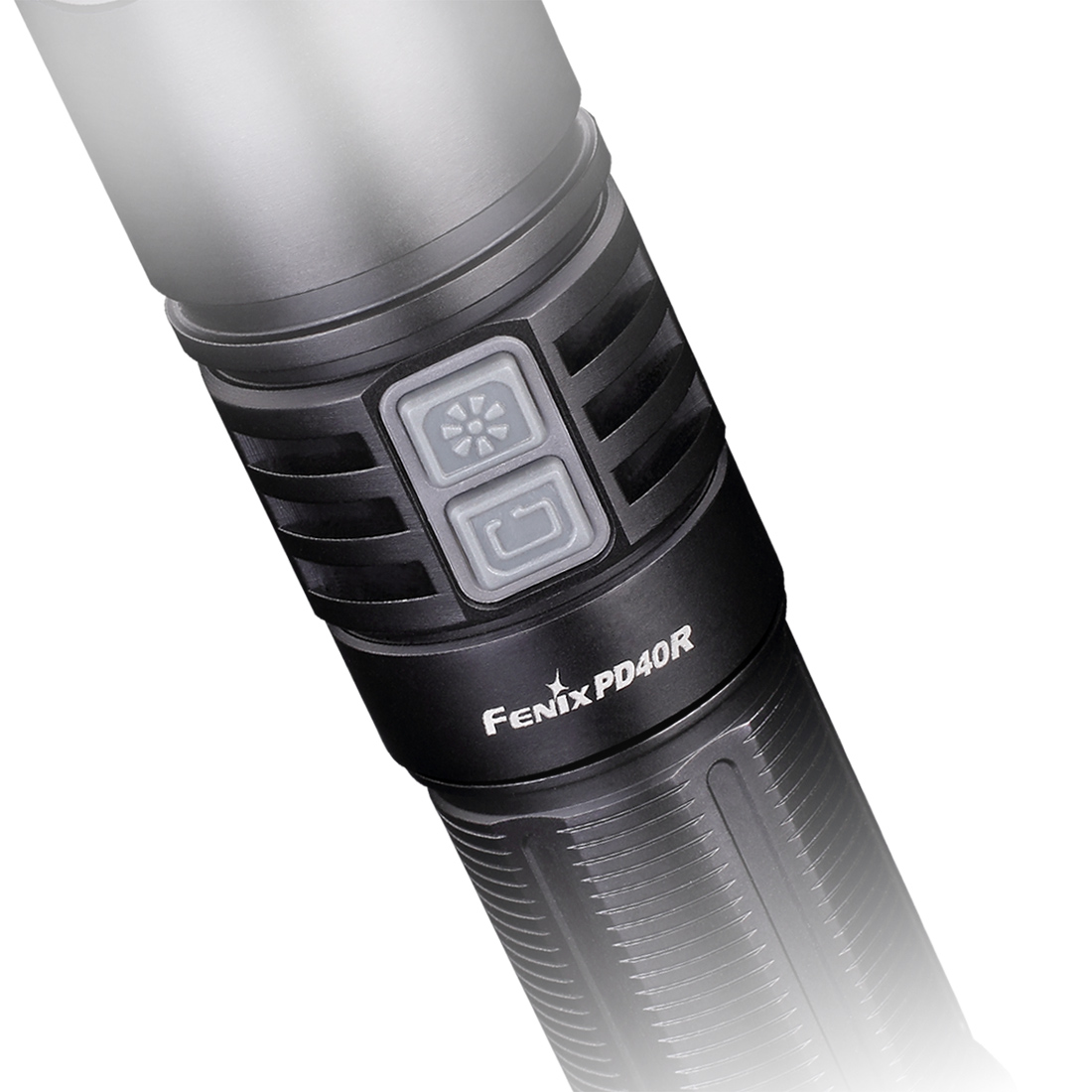 На високому рівні реалізована і захист ліхтаря від зовнішніх впливів. Корпус Fenix PD40R зроблений з алюмінію, а його поверхня ще й зазнала анодування (Premium Type III). Така оболонка відмінно оберігає ліхтар від механічних проблем: ударів, подряпин, струсу. А ретельне припасування окремих деталей робить ліхтар повністю водонепроникним, що значно розширює область його застосування.
