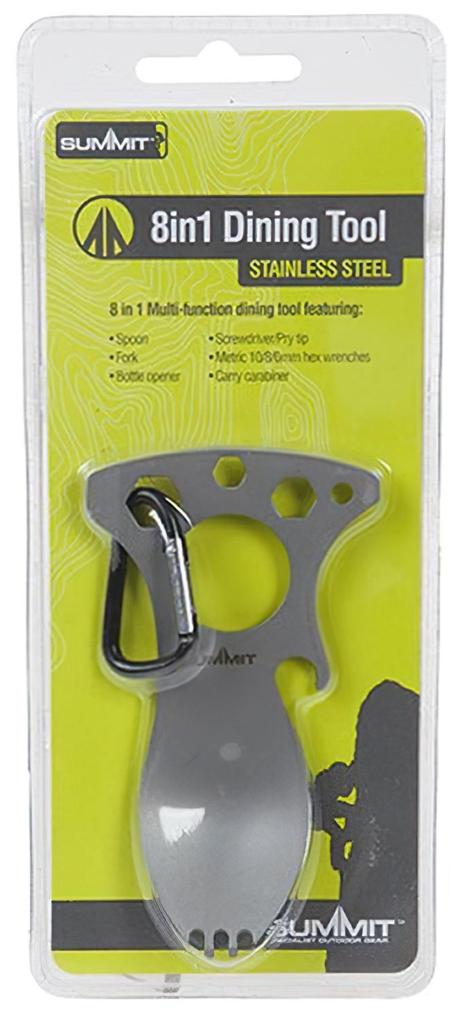 Summit 8-in-1 універсальний інструмент, який точно стане в нагоді під час відпочинку на природі. Маленька штучка поєднує цілих вісім корисних функцій, щоб вам не доводилося щоразу ритися в кишенях або рюкзаку.