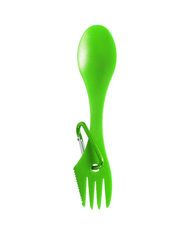 Summit Quattro Space Saving Cutlery Set — це ложка, виделка, ніж з серрейторным лезом і маленький зручний карабін. Багатофункціональний столовий прилад для походів, кемпінгу, пікніків, полювання та риболовлі.