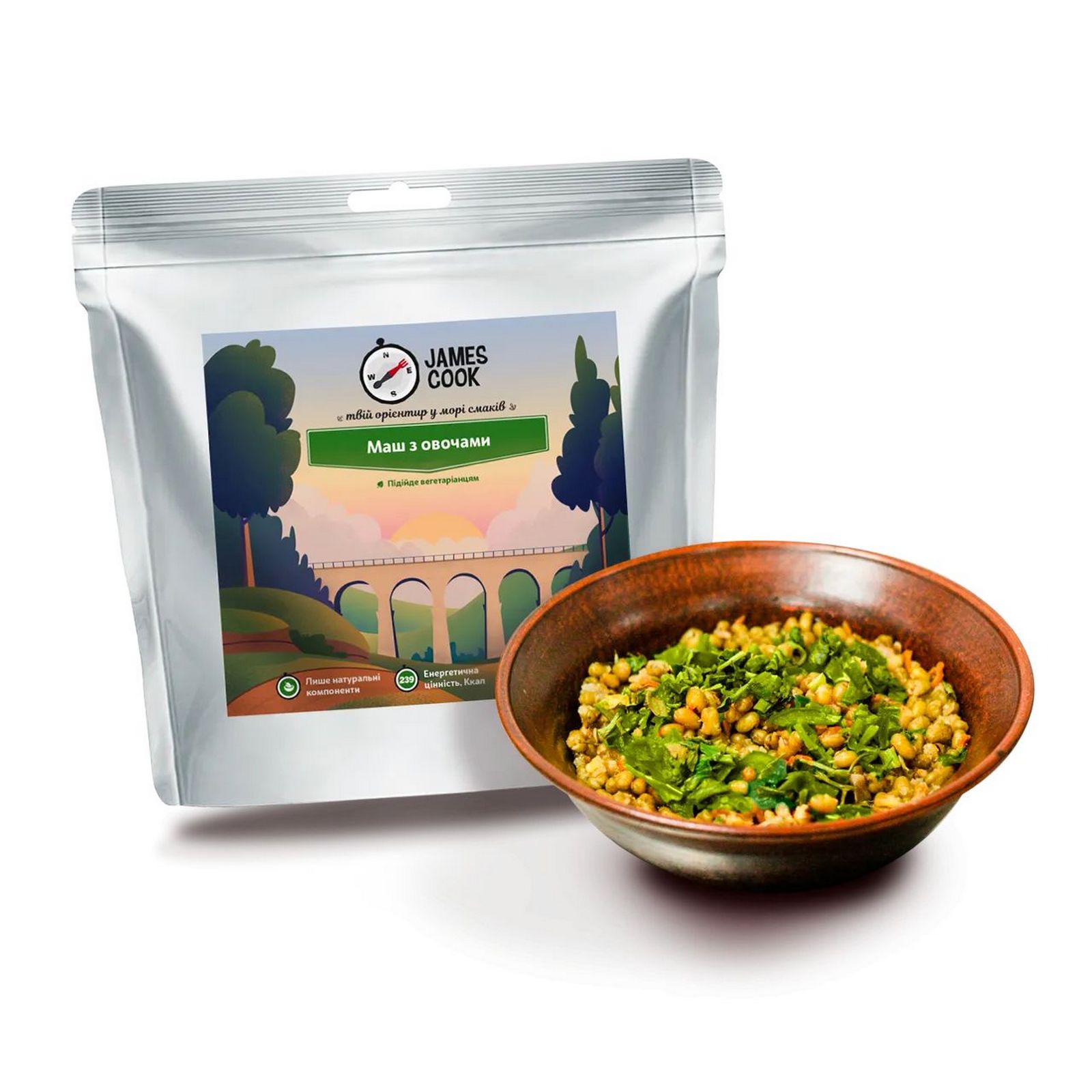 Боби маш (боби мунг) – бобова культура, найпоширеніша у країнах Центральної, Південної та Південно-Східної Азії. Маш багатий білок, залізо, а також клітковину, яка покращує травлення та очищає кишечник. "Маш з овочами" від James Cook - відмінний варіант поживного обіду або вечері, особливо для вегетаріанців. Боби маш, капуста, морква і цибуля, а також дрібка кінзи та хмелі-сунелі – все це робить страву не просто ситною, але й дуже смачною та корисною.